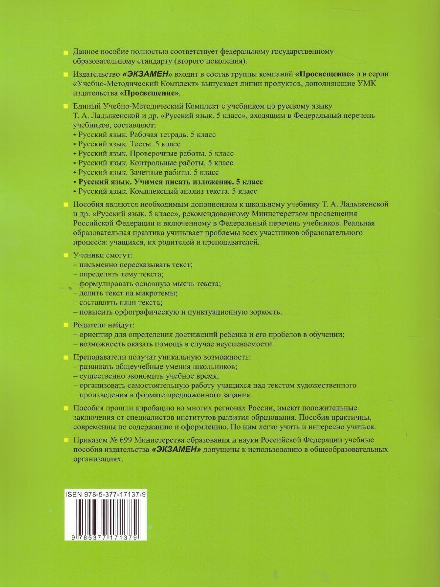 Учимся писать изложение 5 класс. ФГОС (к новому ФПУ)