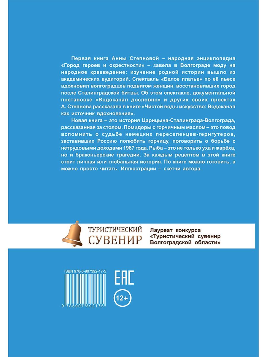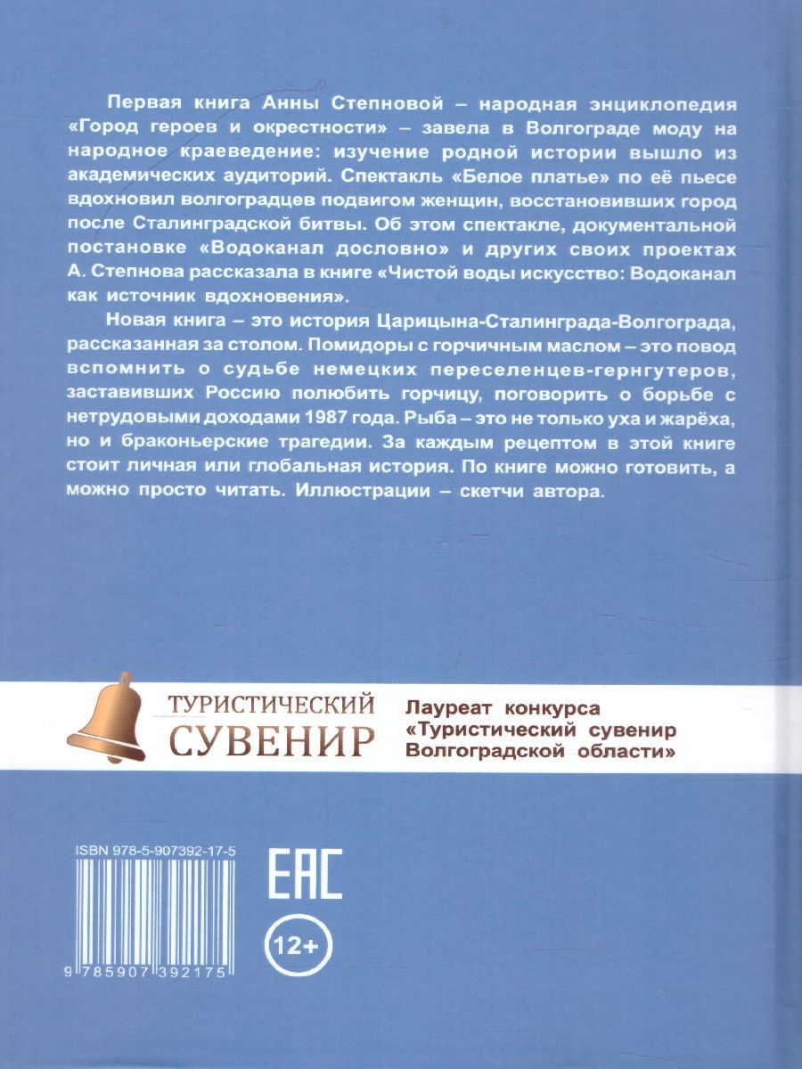 «Книга «Васаби к шашлыку» – это история Волгоградской области в 70 рецептах из местных продуктов. Это рецепты и их истории – личные и теплые. В книге нет изысков. Все блюда – простые, из доступных продуктов. Но порой они просто поразительны – как пирожки с солеными огурцами, которые стали главным блюдом книги. Откуда в России появилась горчица, где находится настоящая арбузная столица России и почему об этом никто не знает, как борьба с нетрудовыми доходами едва не погубила помидорную отрасль, почему по всей стране ставят памятники сусликам – книга об этом и многом другом. Для тех, кто живет в других регионах России, – это не только необычные рецепты, но повод задуматься о создании кулинарной истории своей семьи. Блюда, которые готовят или готовили для нас мамы и бабушки, – это ниточка, которая соединяет поколения. Накормить – значит, поделиться силой, передать любовь и заботу.Характеристики