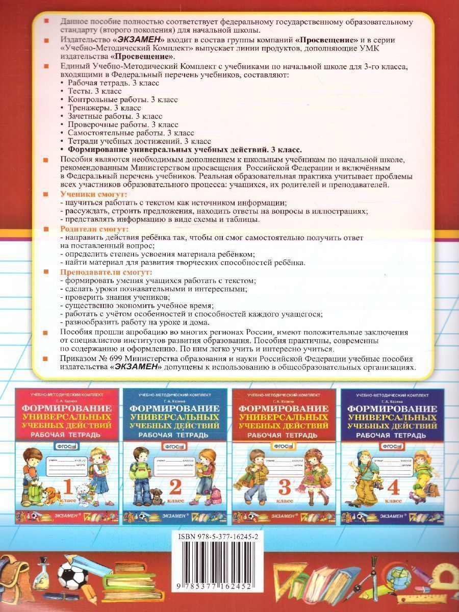 Формиование универсальных учебных действий 3 класс. Рабочая тетрадь. ФГОС