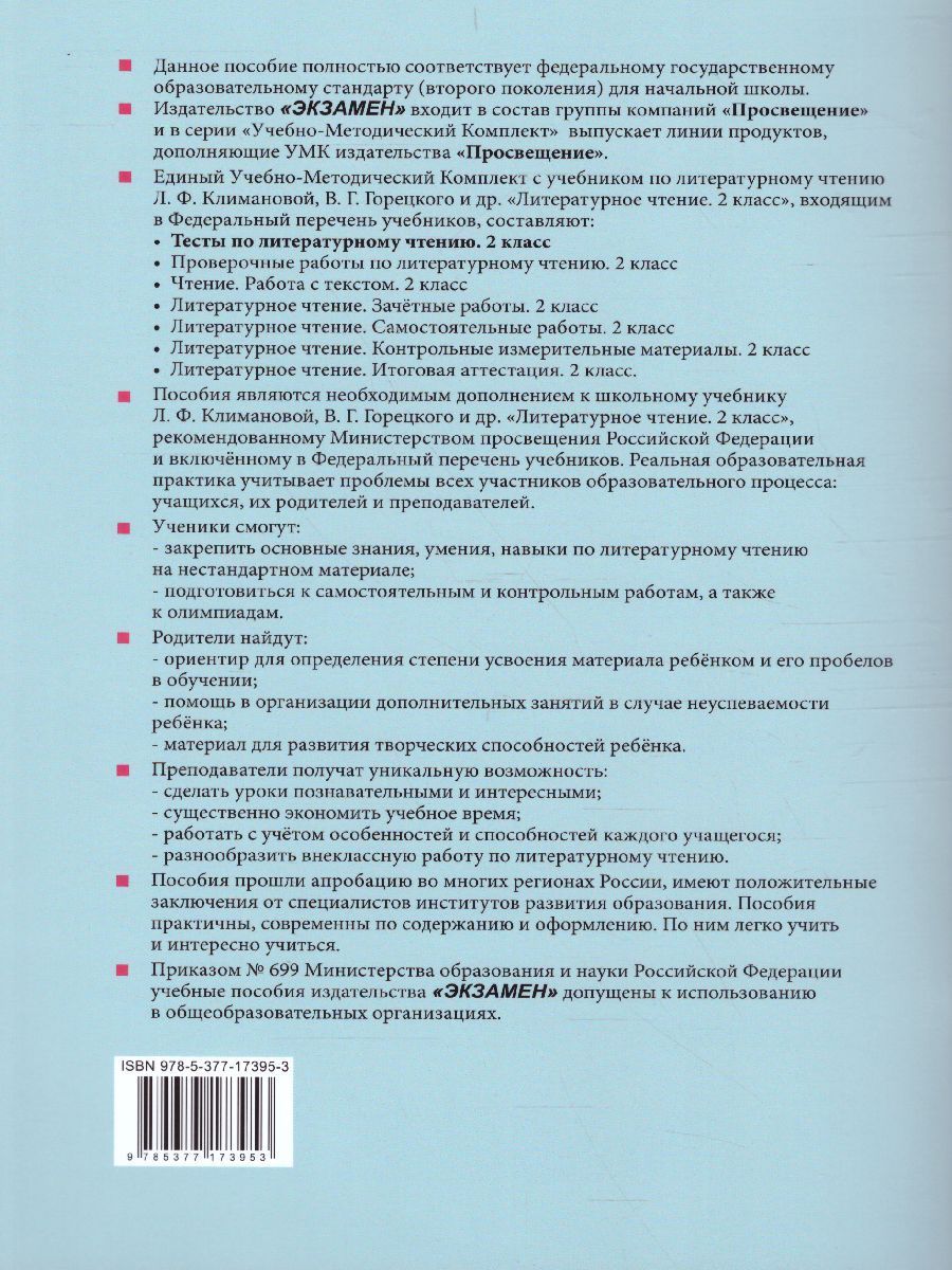 Литературное чтение 2 класс. Тесты. ФГОС