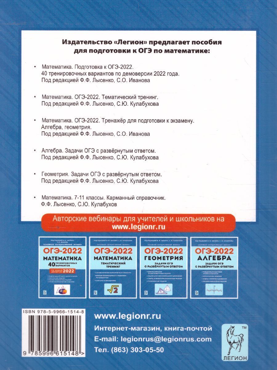 ОГЭ-2022. Математика 9 класс. Тренажёр для подготовки к экзамену. Алгебра, геометрия