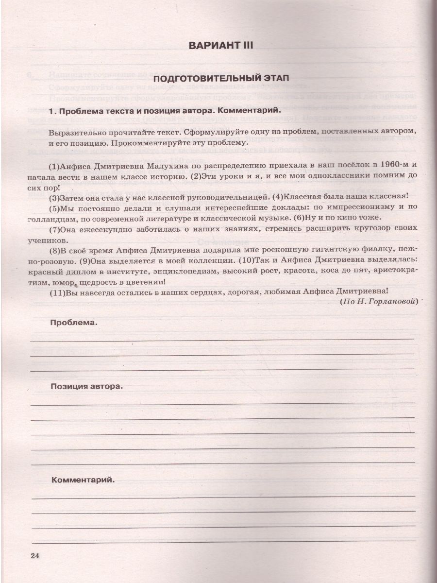 Практикум нацелен на самостоятельную интенсивную подготовку старшеклассников к написанию сочинения по прочитанному тексту в формате Единого государственного экзамена по русскому языку, а также на работу под руководством учителя. Книга содержит 10 вариантов работ, включающих подготовительные и тренировочные задания, которые обеспечивают обучение анализу готового текста и созданию на его основе собственного письменного высказывания. Пособие поможет организовать работу по овладению следующими умениями: формулировать и комментировать проблему прочитанного текста, выявлять и излагать позицию автора, делать вывод о соответствии приведённых высказываний содержанию текста, определять тип речи указанного фрагмента, называть средства связи предложений в тексте, указывать изобразительно-выразительные средства языка. В практикуме представлены ключи: ответы к заданиям, а также примерные развёрнутые ответы. Пособие будет полезно старшеклассникам с разным уровнем подготовки, а также учителям, так как даёт возможность организовать эффективную подготовку к ЕГЭ по русскому языку.Характеристики