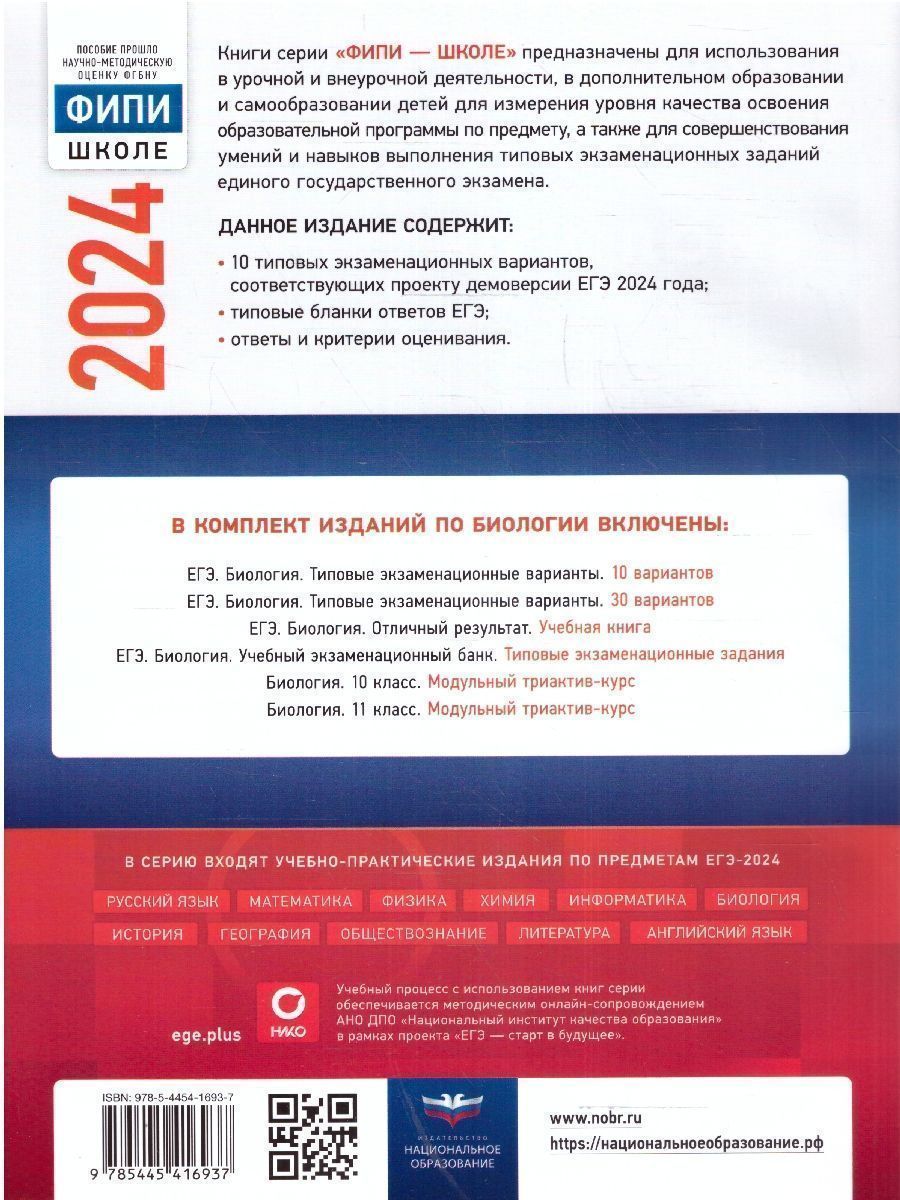 ЕГЭ-2024. Биология. Типовые экзаменационные варианты: 10 вариантов