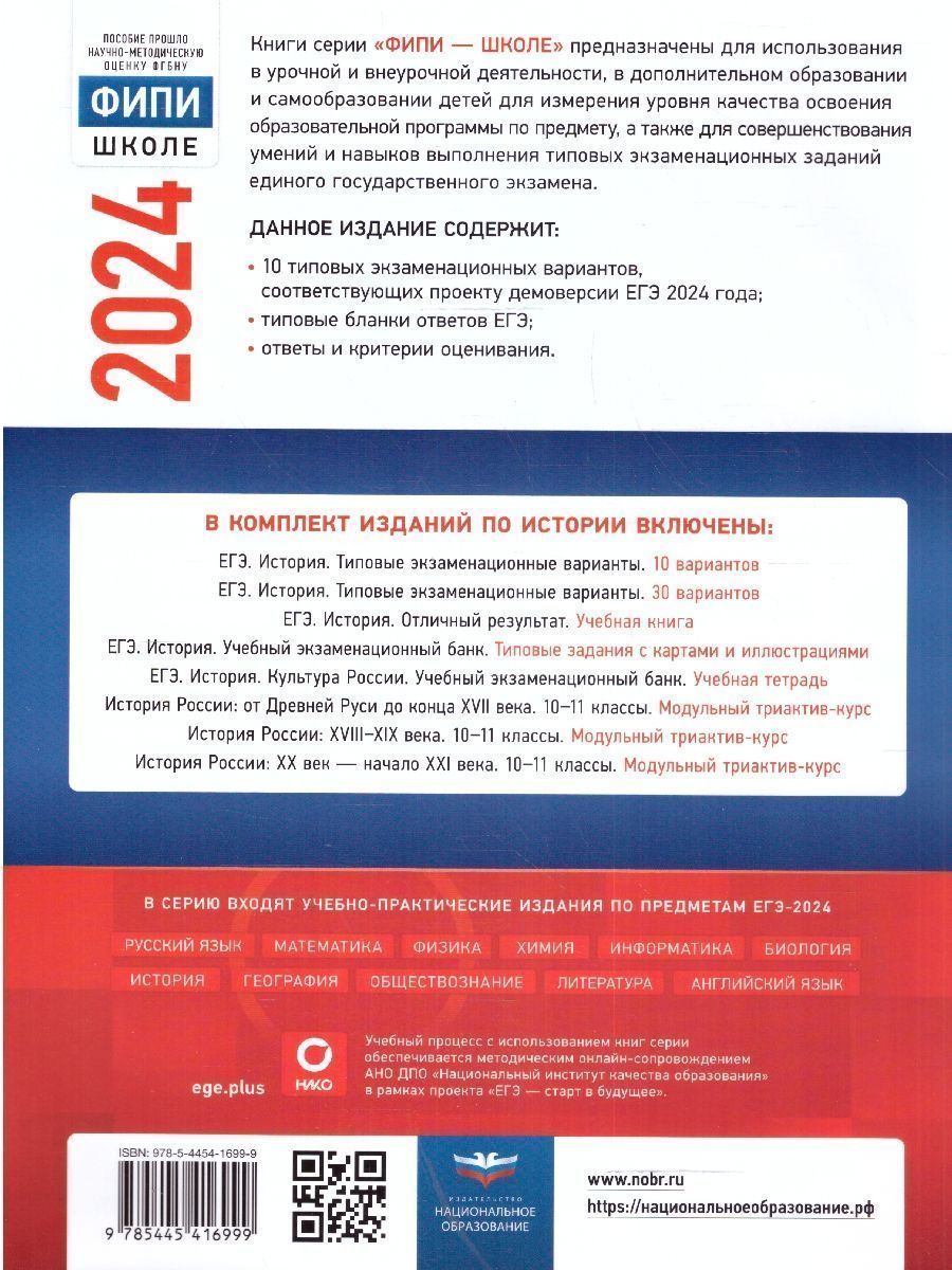 ЕГЭ-2024. История. Типовые экзаменационные варианты: 10 вариантов