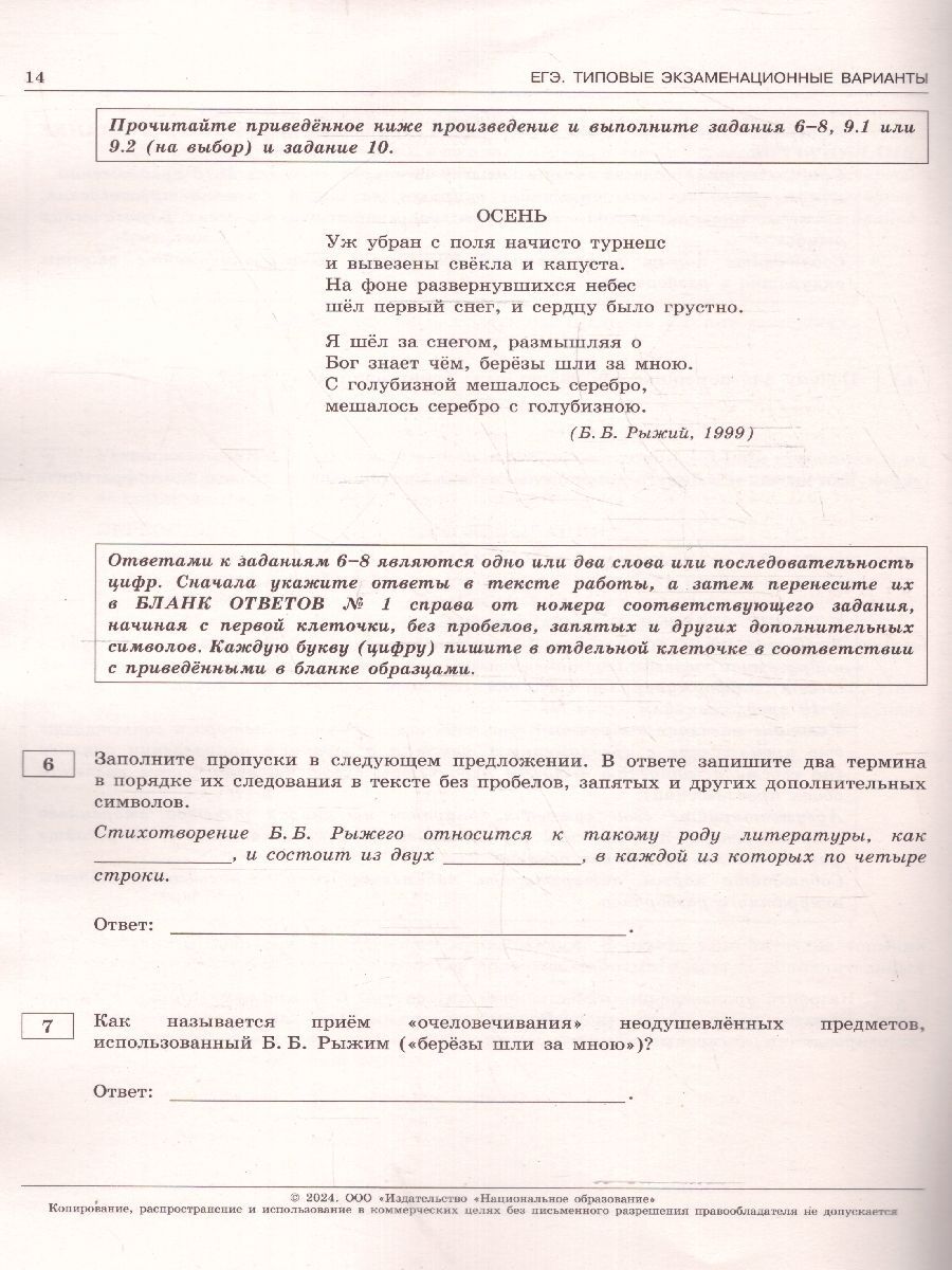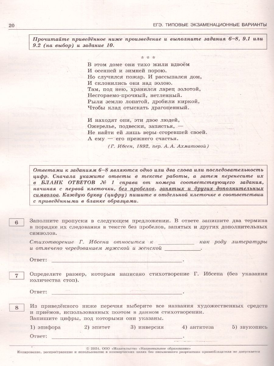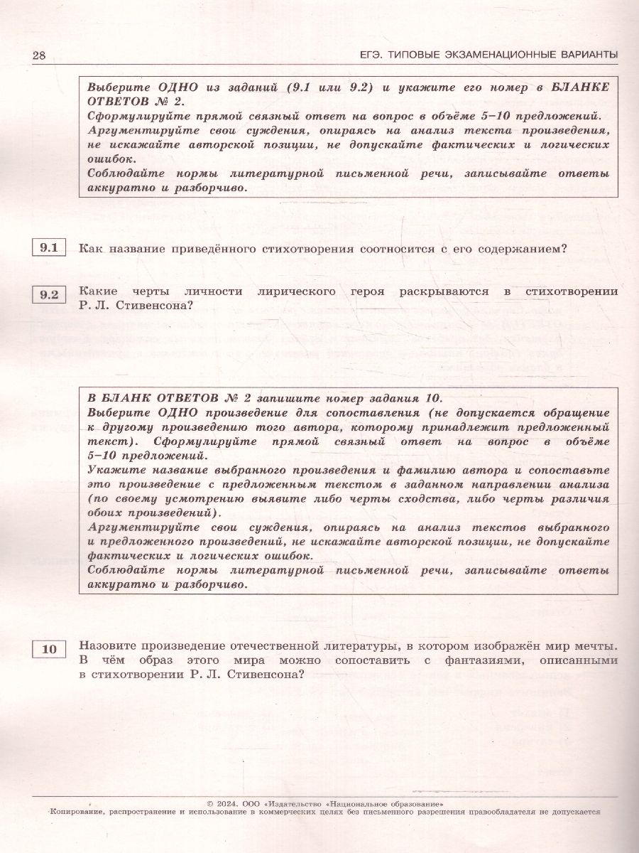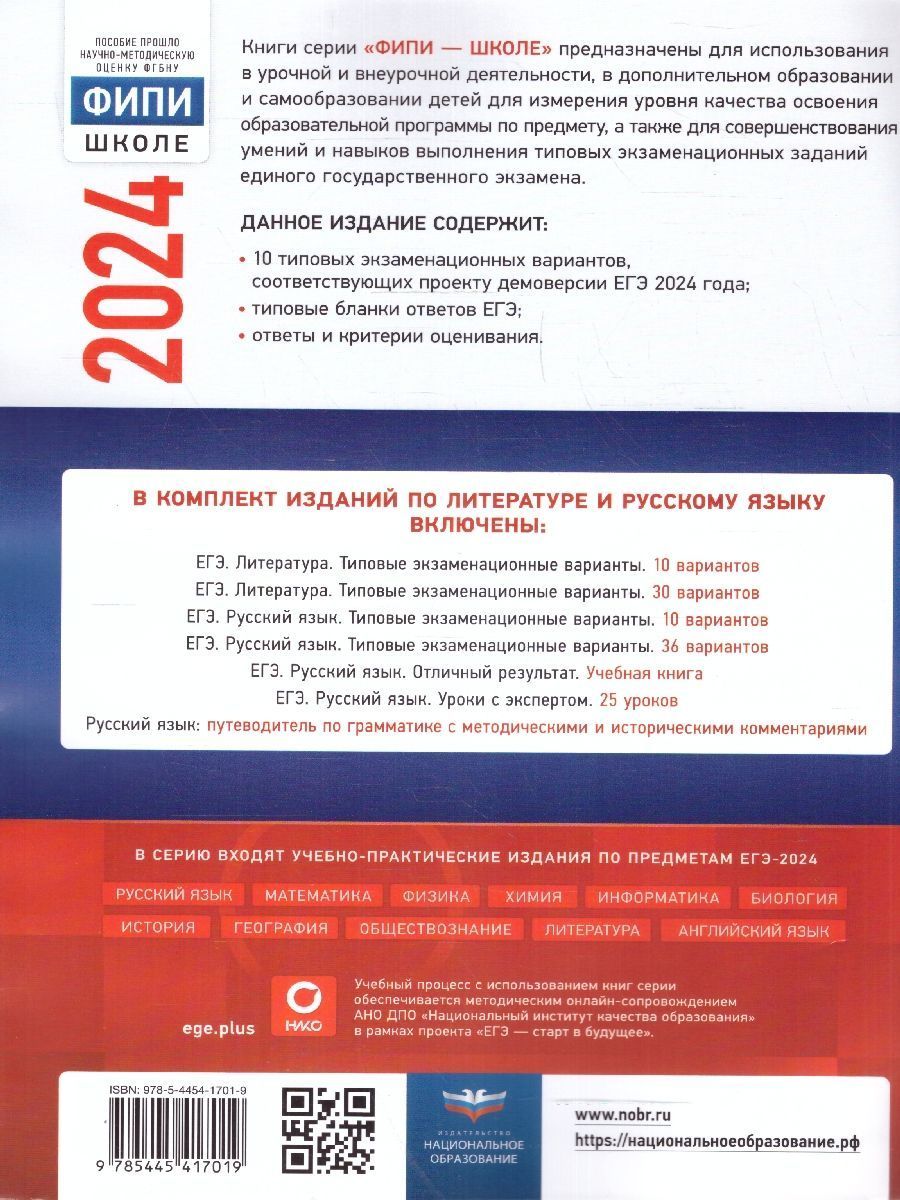 ЕГЭ-2024 Литература. Типовые экзаменационные варианты: 10 вариантов