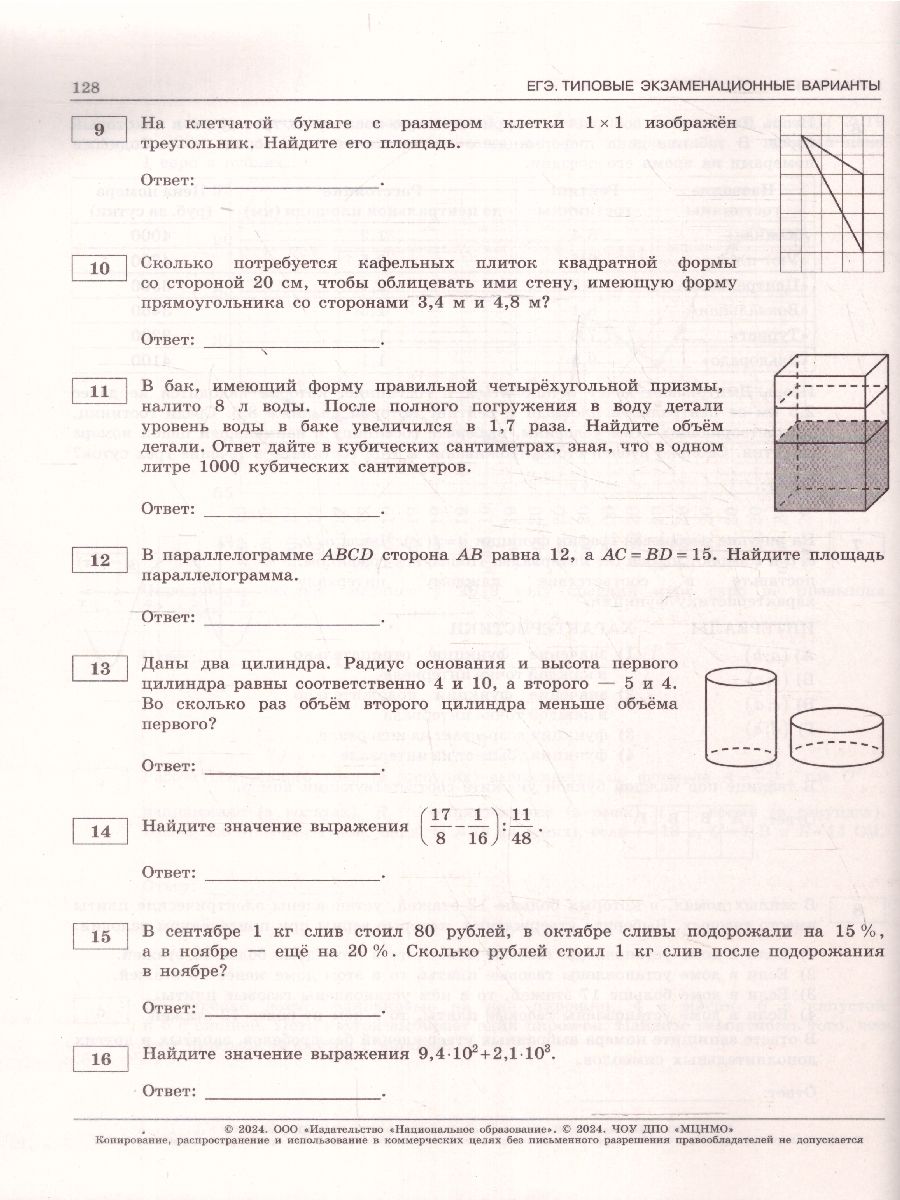 ЕГЭ-2024. Математика. Типовые экзаменационные варианты: 30 вариантов. Базовый уровень