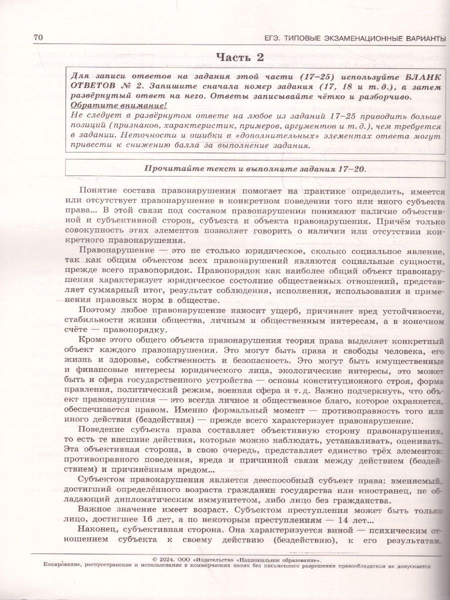 ЕГЭ-2024 Обществознание. Типовые экзаменационные варианты. 10 вариантов. "Серия подготовлена разработчиками контрольных измерительных материалов (КИМ) единого государственного экзамена. В сборнике представлены: • 10 типовых экзаменационных вариантов, составленных в соответствии с проектом демоверсии КИМ ЕГЭ по обществознанию 2024 года; • инструкция по выполнению экзаменационной работы; • ответы ко всем заданиям; • критерии оценивания. Выполнение заданий типовых экзаменационных вариантов предоставляет обучающимся возможность самостоятельно подготовиться к государственной итоговой аттестации в форме ЕГЭ, а также объективно оценить уровень своей подготовки к экзамену. Учителя могут использовать типовые экзаменационные варианты для организации контроля результатов освоения школьниками образовательных программ среднего общего образования и интенсивной подготовки учащихся к ЕГЭ."Характеристики