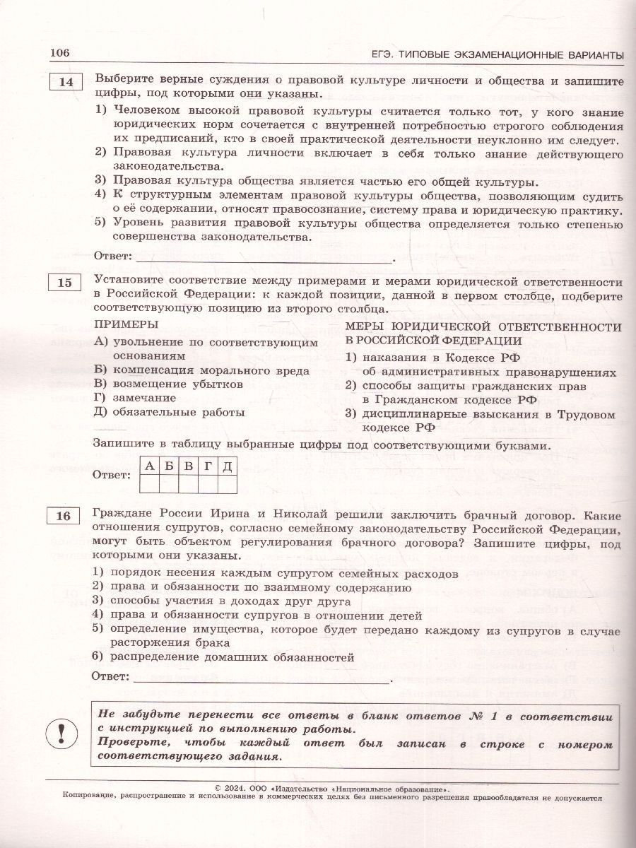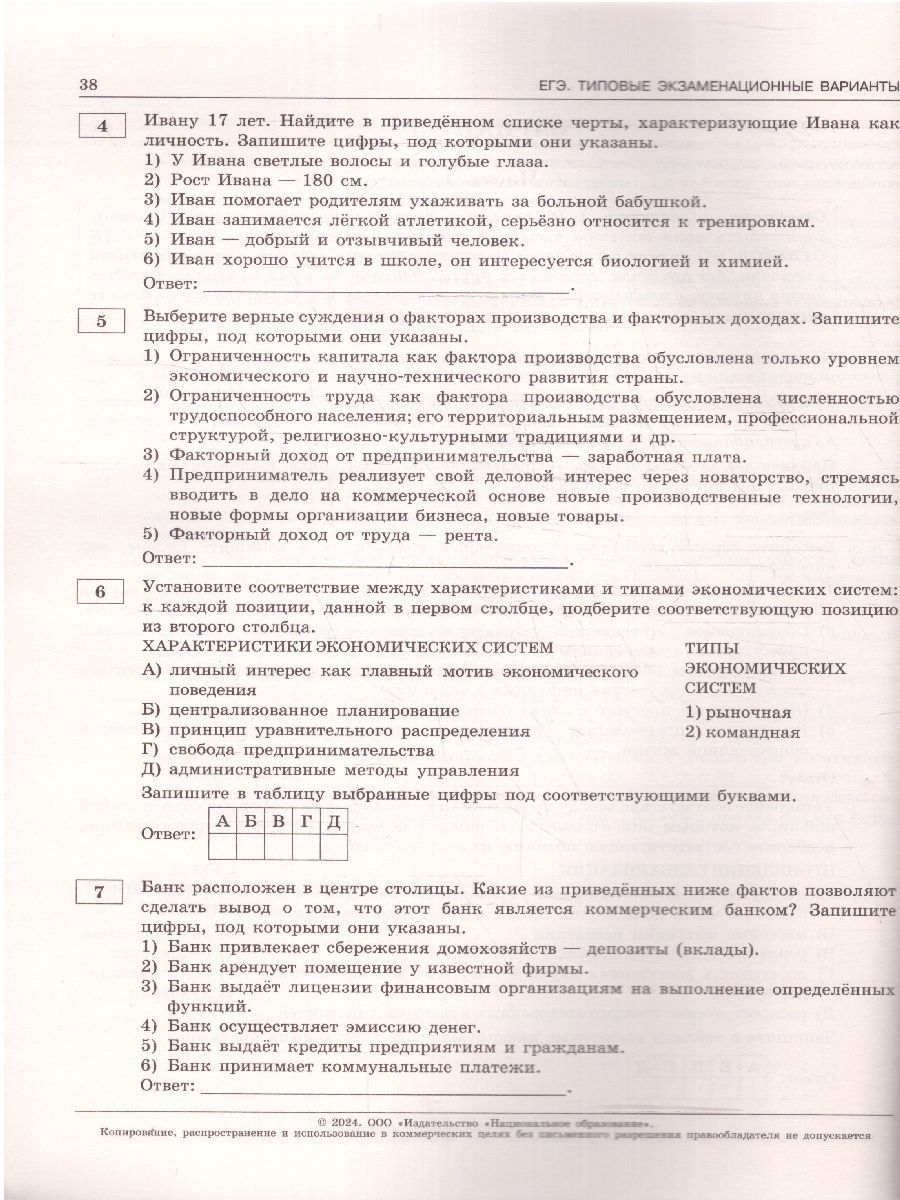 ЕГЭ-2024. Обществознание. Типовые экзаменационные варианты: 10 вариантов