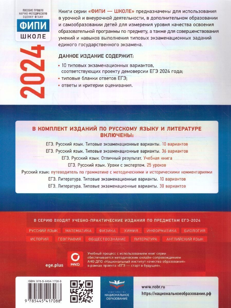 ЕГЭ-2024. Русский язык. Типовые экзаменационные варианты: 10 вариантов