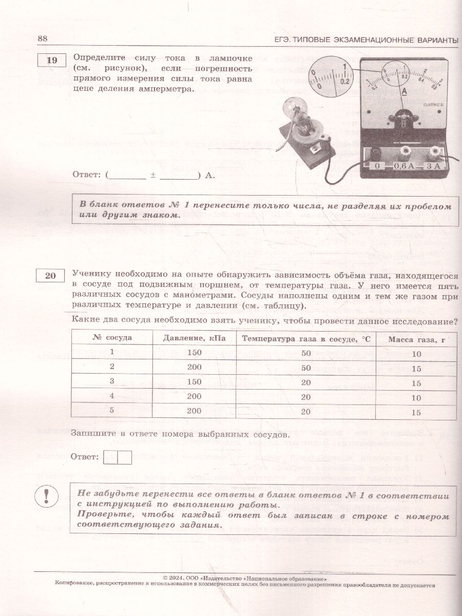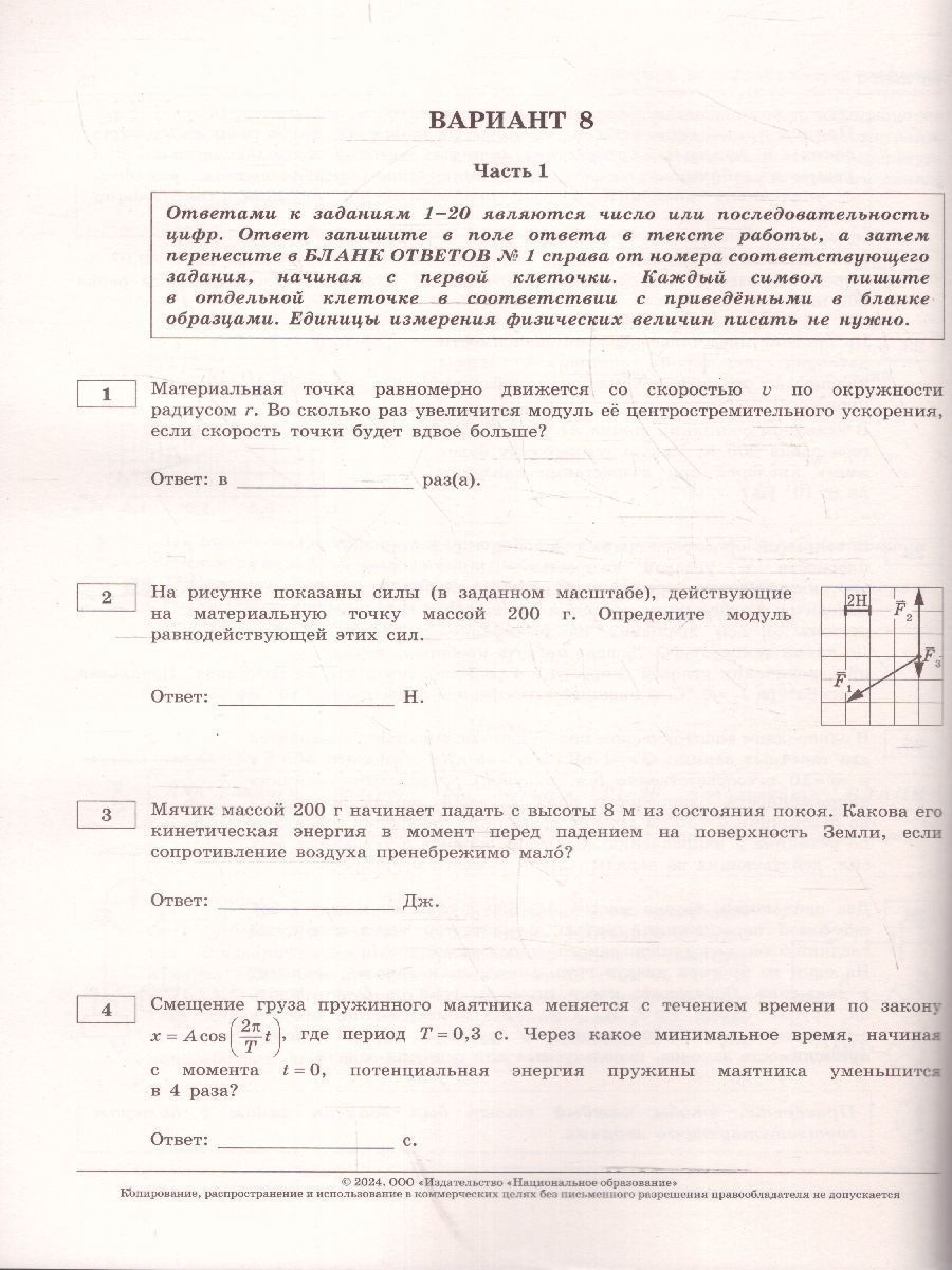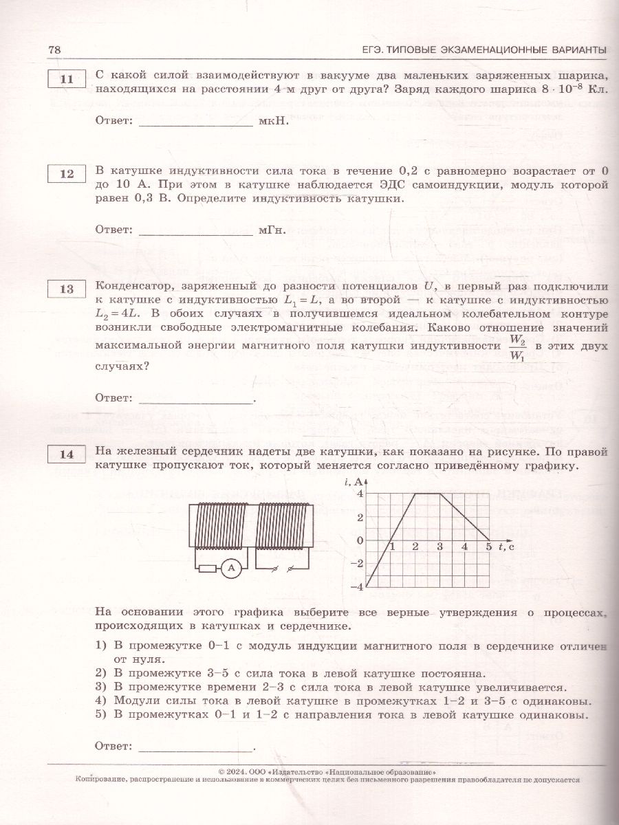 ЕГЭ-2024 Физика. Типовые экзаменационные варианты. 10 вариантов. "Серия подготовлена разработчиками контрольных измерительных материалов (КИМ) единого государственного экзамена. В сборнике представлены: 10 типовых экзаменационных вариантов, составленных в соответствии с проектом демоверсии КИМ ЕГЭ по физике 2024 года; инструкция по выполнению экзаменационной работы; ответы ко всем заданиям; критерии оценивания. Выполнение заданий типовых экзаменационных вариантов предоставляет обучающимся возможность самостоятельно подготовиться к государственной итоговой аттестации в форме ЕГЭ, а также объективно оценить уровень своей подготовки к экзамену. Учителя могут использовать типовые экзаменационные варианты для организации контроля результатов освоения школьниками образовательных программ среднего общего образования и интенсивной подготовки обучающихся к ЕГЭ."Характеристики