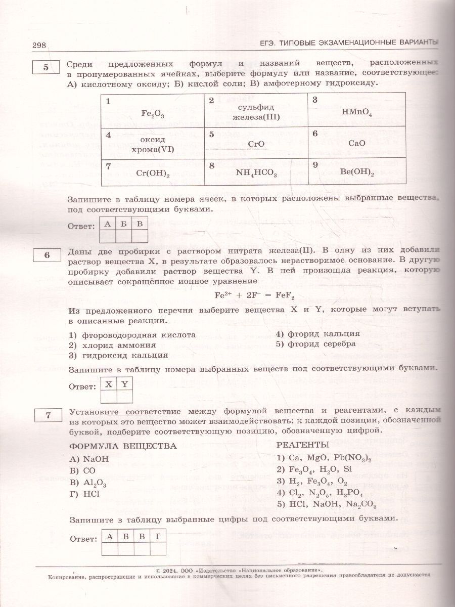 ЕГЭ-2024 Химия. Типовые экзаменационные варианты: 30 вариантов