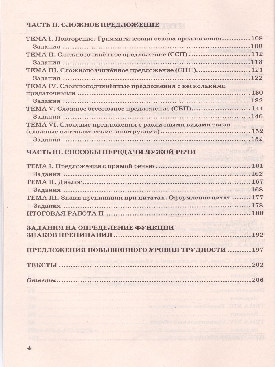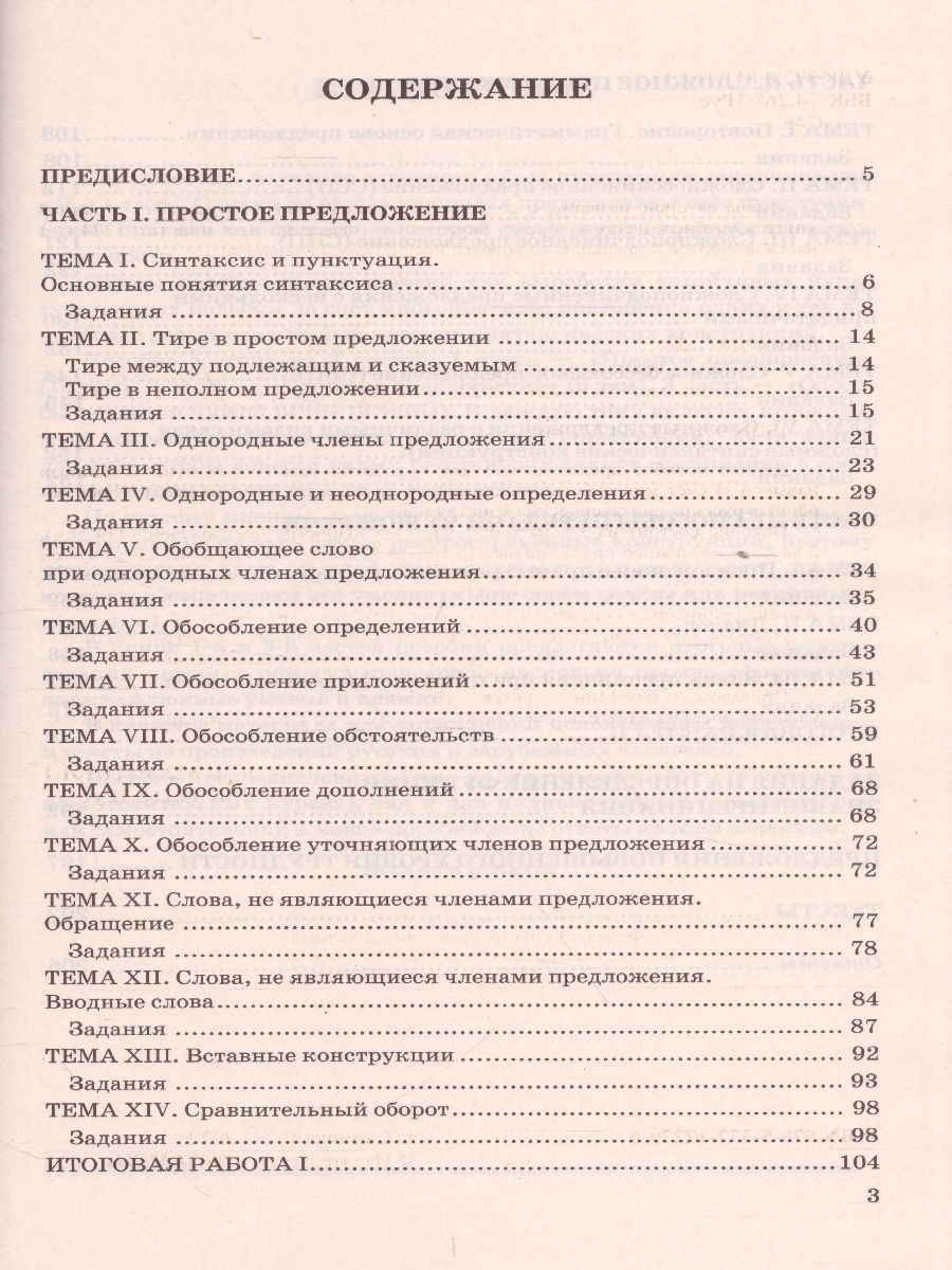 Данное пособие предназначено для выработки устойчивых пунктуационных навыков за счёт многократного повторения одних и тех же наиболее распространённых русских синтаксических конструкций. Пособие состоит из 3-х частей: 1 часть - "Простое предложение" (14 тем), 2 часть - "Сложное предложение" (6 тем), 3 часть - "Способы передачи чужой речи" (3 темы). В каждую тему включён необходимый теоретический материал и комплекс упражнений, достаточный для того, чтобы довести навык расстановки знаков препинания в соответствующих конструкциях до автоматизма. Пособие адресовано старшеклассникам и предназначено как для коллектив-ной работы (в классе, на подготовительных курсах), так и для индивидуальной (с репетитором или самостоятельно); в конце пособия даны ответы ко всем заданиям.Характеристики