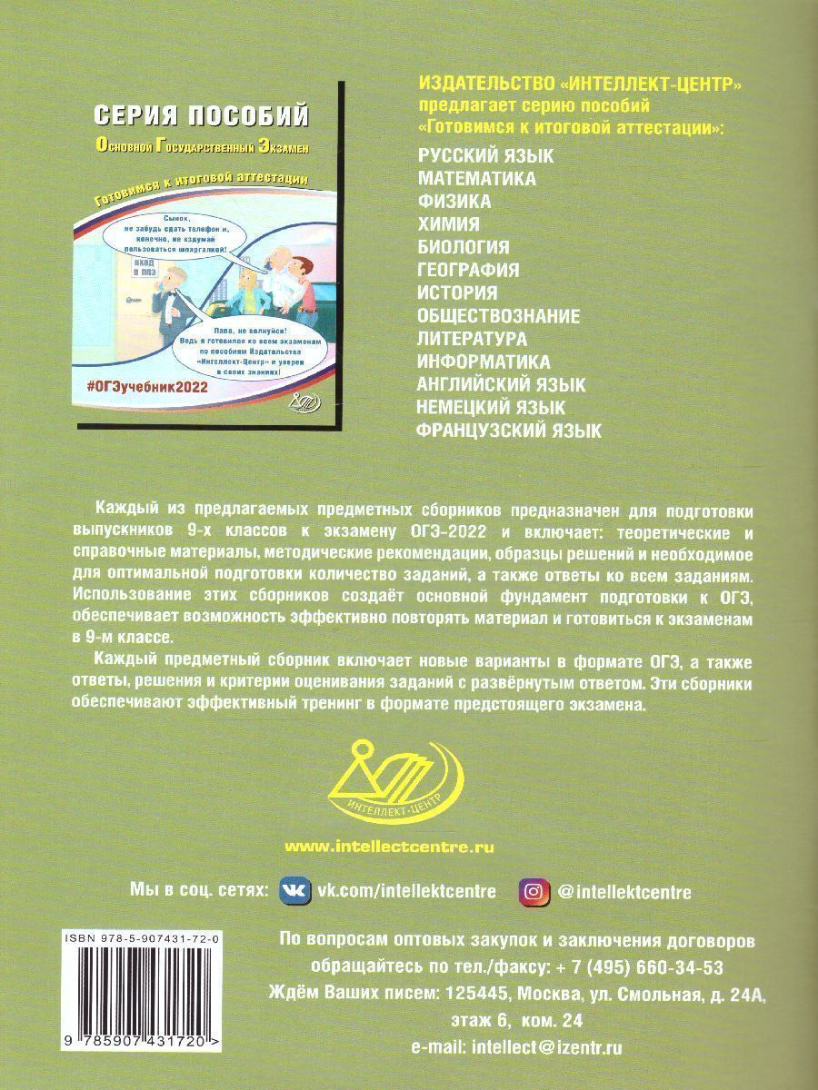 Данное пособие предназначено для подготовки учащихся 9 классов к государственной аттестации - основному государственному экзамену (ОГЭ) по литературе. Издание включает типовые задания по всем содержательным линиям экзаменационной работы, а также примерные варианты в формате ОГЭ 2022 года. Пособие поможет школьникам проверить свои знания и умения по предмету, а учителям - оценить степень достижения требований образовательных стандартов отдельными учащимися и обеспечить их целенаправленную подготовку к экзамену.Характеристики