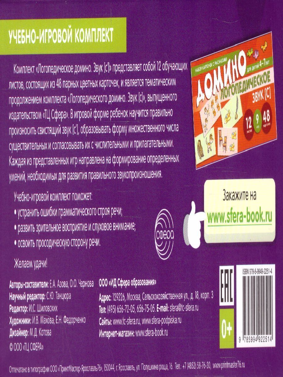 ![Набор карточек с рисунками Домино логопедическое Звук [С']. Для детей 4-7 лет (Сфера) Набор карточек с рисунками Домино логопедическое Звук [С']. Для детей 4-7 лет (Сфера)](/upload/resize_cache/iblock/8e8/50_50_140cd750bba9870f18aada2478b24840a/gusphf6e6oommxi4em39q2ntslsnkjay.jpg)