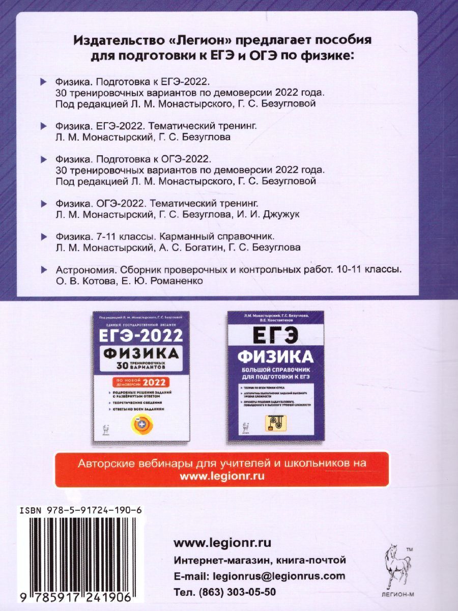 В пособии собран материал, необходимый для качественной подготовки к ЕГЭ по физике. Книга содержит: - около 1500 заданий базового, повышенного и высокого уровней сложности по всем разделам курса физики, в том числе новые типы заданий, соответствующие официальным проектам демоверсии и спецификации ЕГЭ 2022 года, опубликованным 25.08.2021 на сайте ФИПИ; - краткие теоретические сведения по каждому разделу; - ответы ко всем заданиям и решения некоторых из них. Пособие поможет учащимся 10-11-х классов повторить и систематизировать изученный ранее материал и подготовиться к ЕГЭ. Учителя могут использовать пособие для организации тематического повторения курса физики, выявления и устранения возможных пробелов в подготовке выпускников, для проведения проверочных работ. Книга может быть использована и при дистанционном обучении.Характеристики
