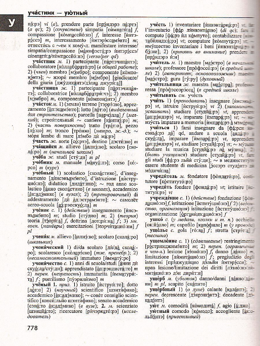 Данное издание словаря, состоящее из итальянско-русской и русско-итальянской части, включает около 380000 слов и словосочетаний встречающихся в современных русском и итальянском языках. В составе словаря широко представлена современная лексика, отражающая различные области культуры, науки и техники. Для удобства читателя и исключения ошибок в произношении в словарных статьях представлена итальянско-русская практическая транскрипция. В словарь добавлены краткие списки географических названий и закладки по буквам алфавита для удобства навигации. Словарь предназначен для самого широкого круга читателей: переводчиков, преподавателей и студентов высших и средних учебных заведений, учащихся средних и старших классов, а также всех, желающих углубленно изучить итальянский язык.Характеристики