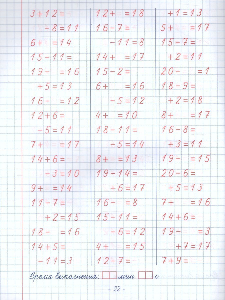 Пропись. Навыки счета от 0 до 10, от 0 до 20 и задачи на действия с числами от 0 до 20
