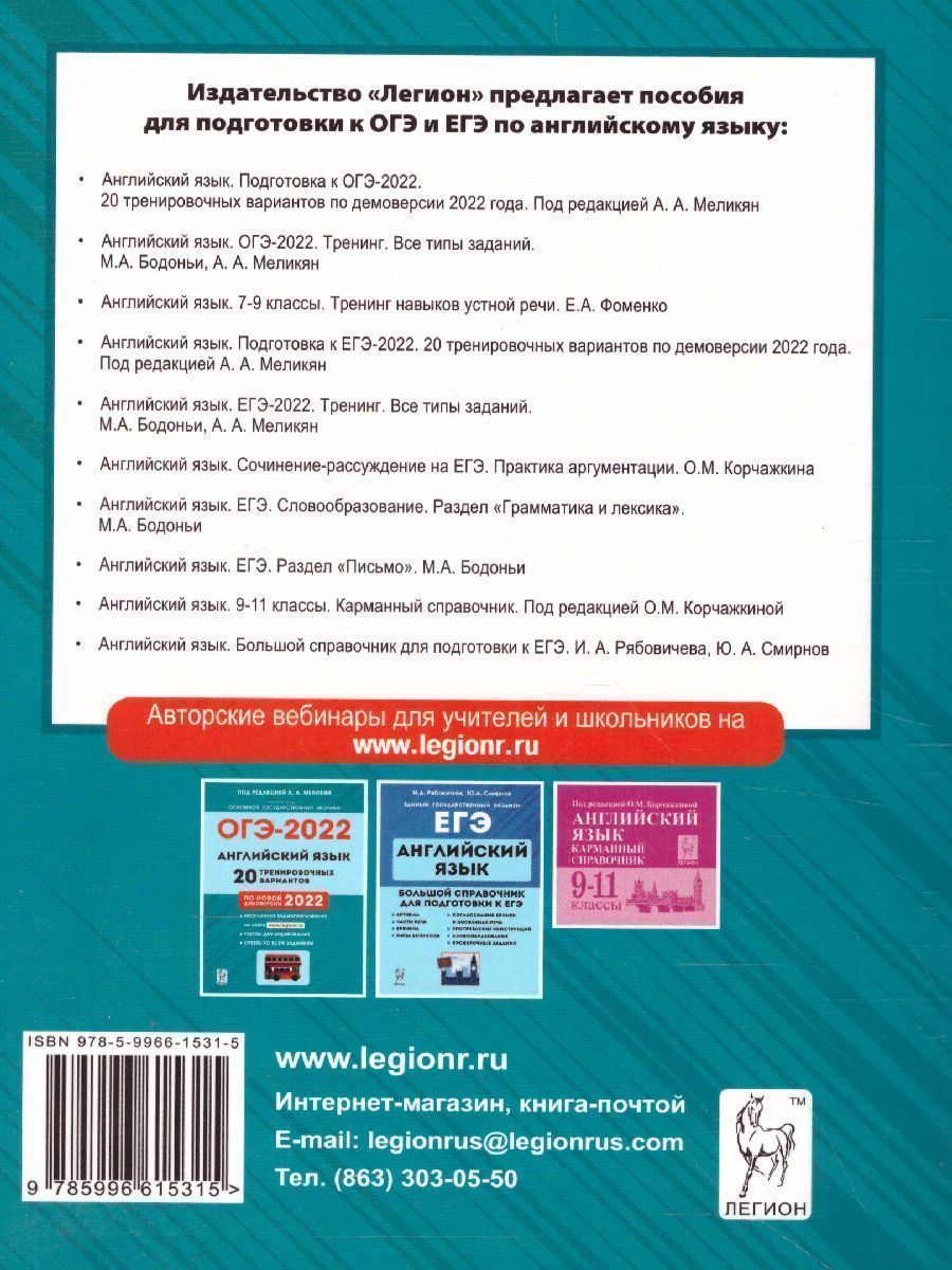 Пособие содержит задания для подготовки к сдаче устной и письменной частей ОГЭ. Они позволят ученику в сжатые сроки развить языковые навыки и речевые умения, проверяемые на ОГЭ. Книга содержит: - краткие методические рекомендации по подготовке к ОГЭ; - дополнительные материалы и задания, направленные на систематизацию знаний и автоматизацию речевых умений; - задания всех типов; - ответы ко всем заданиям. Аудиоприложение к разделам "Аудирование" и "Устная часть" размещено на сайте издательства Легион в свободном доступе (бесплатно). Учебное пособие адресовано учащимся 9-х классов, планирующим сдавать ОГЭ по английскому языку, а также учителям. Материал пособия можно использовать для дистанционного обучения.Характеристики