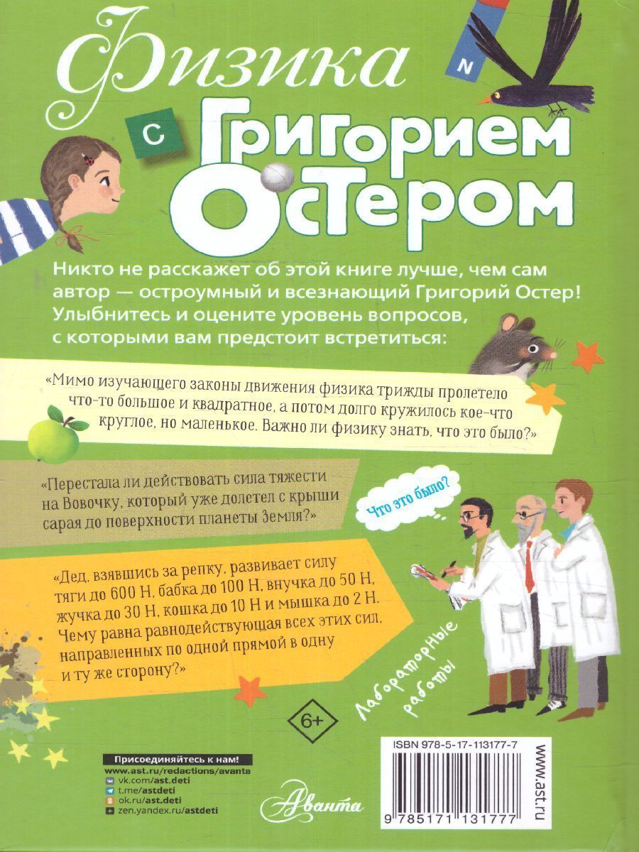 Григорий Остер - настоящий классик детской литературы. На его "Вредных советах" выросло уже несколько поколений. И теперь мы точно знаем, что его советы были полезны! И если вы уже выучили с Остером математику, то самое время браться за физику. Она всегда считалась в школе трудным предметом. Но Григорий Бенционович и не с такими сложностями справлялся. Поэтому, смеясь и борясь с ленью и неуверенностью, давайте решать задачи и выполнять лабораторные работы! Хорошие оценки на уроках физики вам обеспечены!Характеристики
