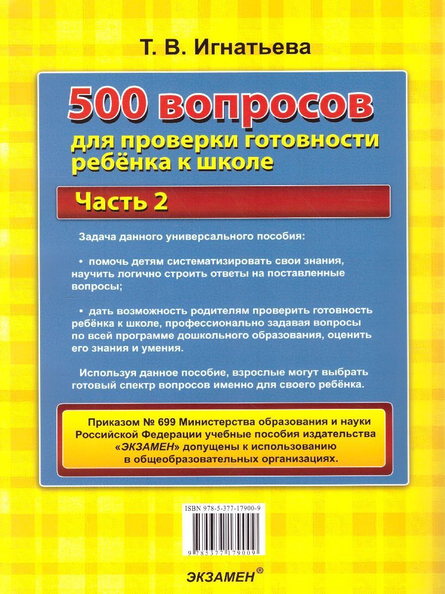 500 вопросов для проверки готовности ребенка к школе Часть 2. ФГОС