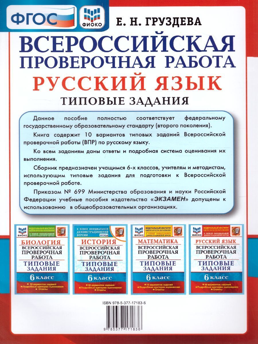 ВПР. Русский язык 6 класс. 10 вариантов. ФИОКО. Типовые задания. ФГОС