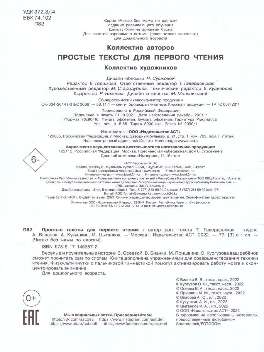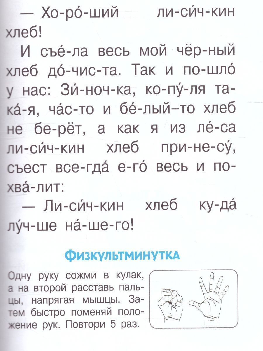 Весёлые и поучительные истории В. Осеевой, В. Бианки, М. Пришвина, О. Кургузова ваш ребёнок сможет прочитать сам по слогам. Книга дополнена упражнениями для совершенствования техники чтения. Физкультминутки с пальчиковой гимнастикой помогут активизировать работу мозга и сконцентрировать внимание. Для дошкольного возраста.Характеристики