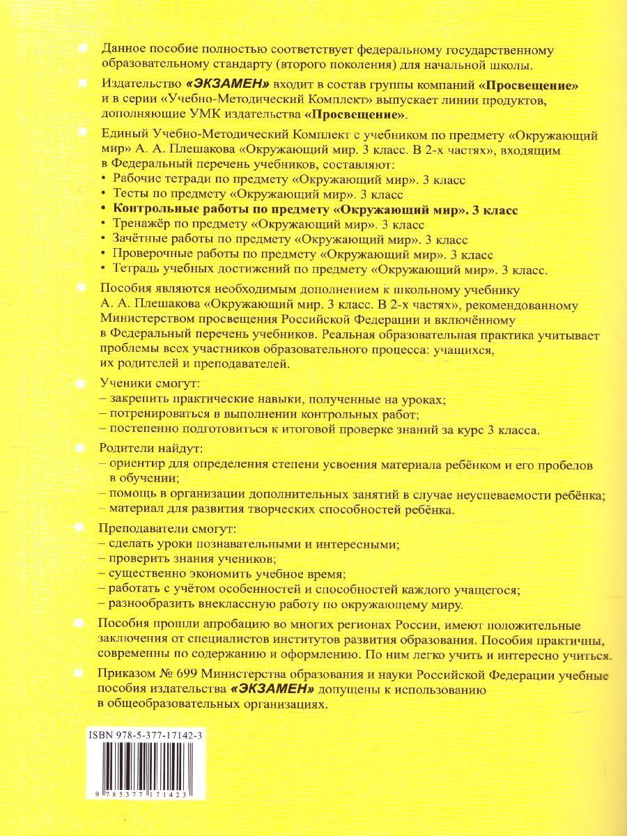 Окружающий мир 3 класс. Контрольные работы. Часть 2 (к новому ФПУ). ФГОС