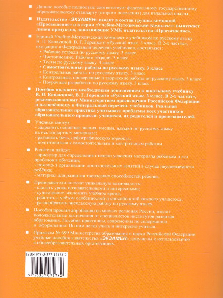 Русский язык 3 класс. Самостоятельная работа. УМК Канакина. ФГОС