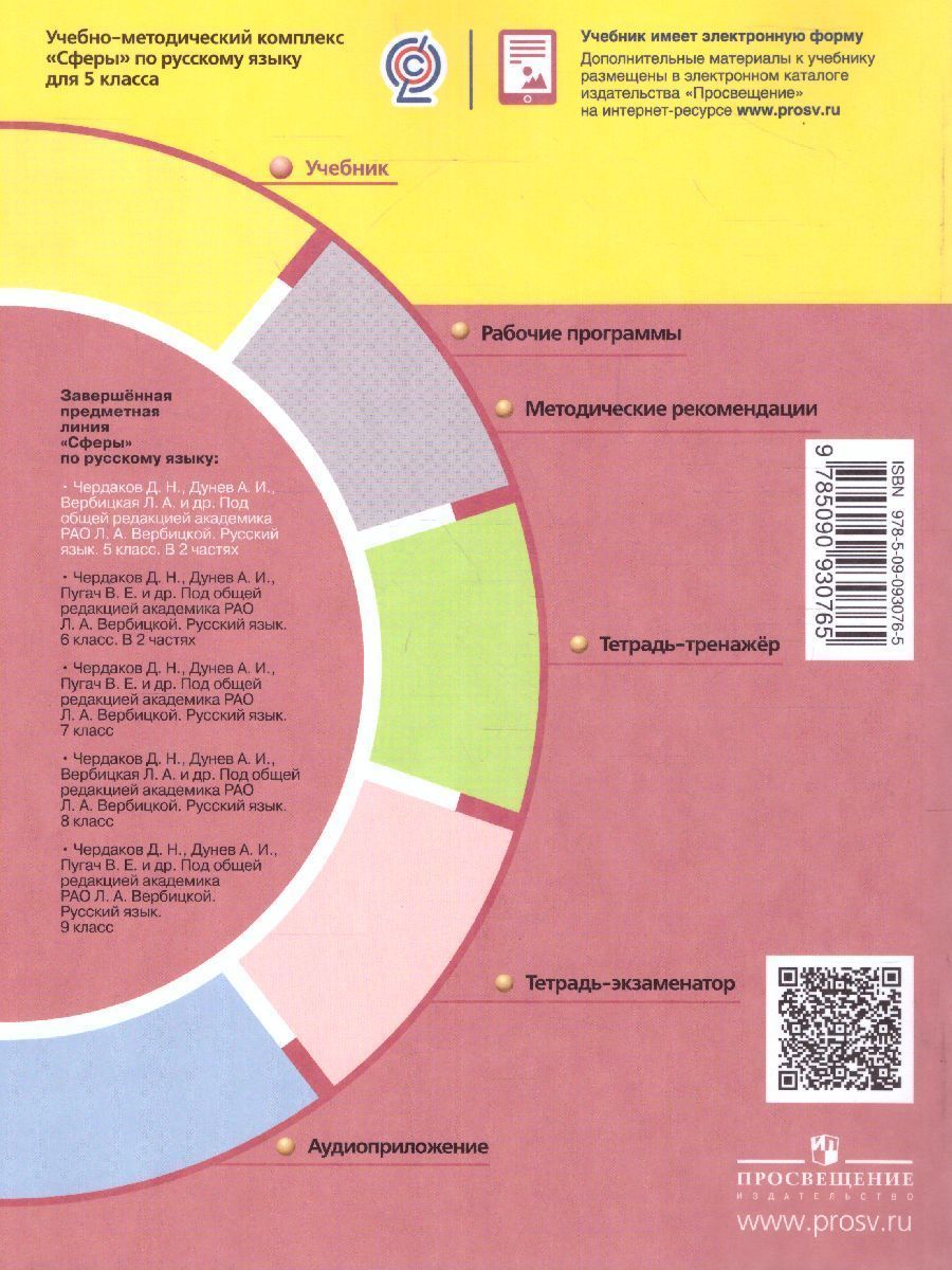 Русский язык. 5 класс. Учебник в 2-х частях. Часть 1Учебно-методический комплекс "Сферы" по русскому языку для 5 класса.Характеристики