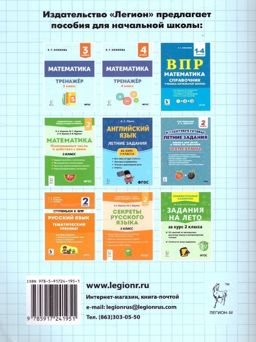Математика. 2 класс. Тренажер. Наше пособие предназначено для отработки навыков счёта в пределах от 0 до 100. Тренажёр содержит задания по математике для 2-го класса с учётом требований ФГОС НОО. В пособие вошли различные виды примеров и задач, геометрические задания и задания на определение времени. Пособие адресовано учителям начальных классов, учащимся и их родителям.Характеристики