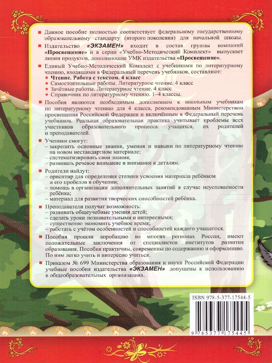 Данное пособие полностью соответствует федеральному государственному образовательному стандарту (второго поколения) для начальной школы. Работа с текстом - это интересный и полезный вид работы. Способствует обучению учащихся извлекать из текста требуемую информацию и обрабатывать её. В ходе работы развивается речевое внимание к языковой стороне текста, внимание к деталям. К каждому тексту прилагаются вопросы, составленные с учётом его лингвистического, стилистического и художественного своеобразия. Работа с иллюстративным материалом способствует развитию познавательной активности каждого учащегося. Данный материал может использоваться с любым учебником. Пособие адресовано учащимся начальных классов, учителям и родителям, занимающимся с детьми.Характеристики