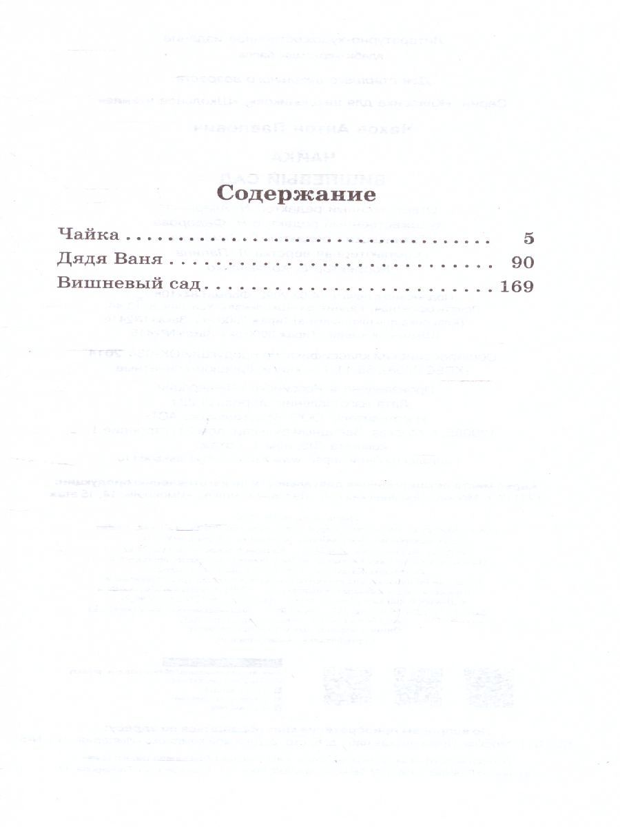 Антон Павлович Чехов (1860-1904) - русский писатель, прозаик, драматург, классик мировой литературы. В книгу вошли самые известные пьесы А.П. Чехова "Чайка", "Дядя Ваня", "Вишневый сад". Сначала пьеса "Чайка" провалилась, но через два года в постановке Московского Художественного театра пьеса имела ошеломляющий успех и стала символом театра. Здесь же были поставлены "Дядя Ваня" и "Вишневый сад". Пьесы А.П. Чехова не сходят со сцен театров всего мира. Возможно, секрет такой популярности в особом взгляде автора на человеческие взаимоотношения и особом способе их изображения в художественном тексте. "Пусть на сцене все будет так же сложно и так же вместе с тем просто, как и в жизни, - говорил Чехов. – Люди обедают, только обедают, а в это время слагается их счастье и разбиваются их жизни".Характеристики