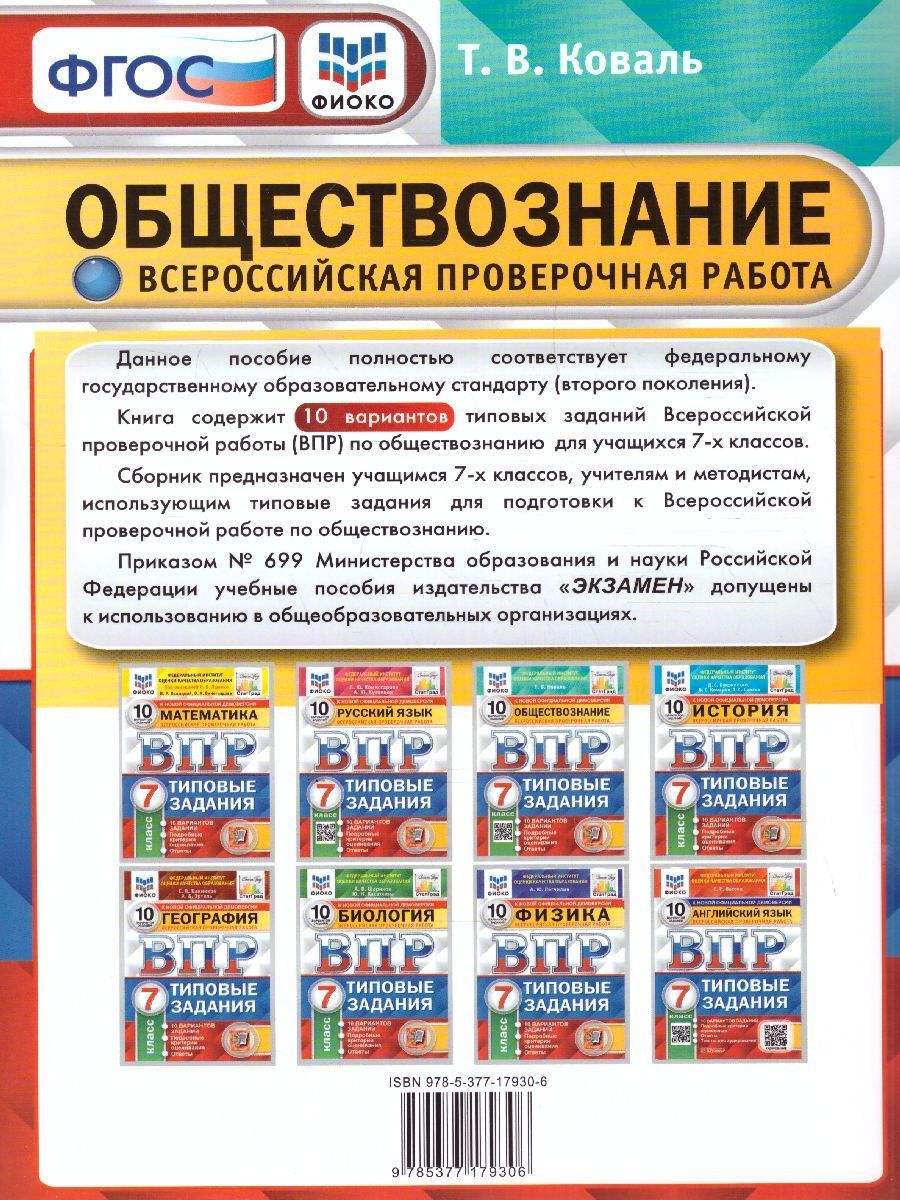 ВПР Обществознание 7 класс. 10 вариантов. ФИОКО СТАТГРАД ТЗ. ФГОС