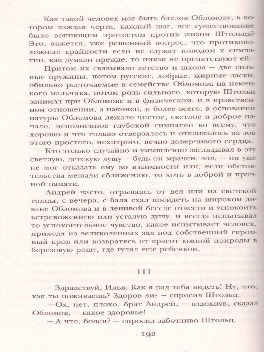 Роман Ивана Александровича Гончарова (1812–1891) "Обломов" (1859) – одно из важнейших произведений русской литературы XIX века. Он затрагивает острые социальные проблемы того времени: тяжёлую жизнь крепостных крестьян, лень и праздность помещиков. Образ главного героя – Ильи Ильича Обломова – настолько правдиво и точно отразил распространённый типаж русского дворянства XIX века, что понятие "обломовщина" сразу вошло в обиход. Критик Николай Добролюбов даже утверждал, что "обломовщина" – "ключ к разгадке многих явлений русской жизни". Илья Ильич Обломов – барин тридцати лет, которому уже всё наскучило, он апатичен и ленив, и любая деятельность вызывает у него отвращение и скуку. Единственное, что он делает – лежит на диване и думает. Вся жизнь Обломова проходит в мечтах: то он возомнит себя великим полководцем, то вообразит себя женатым человеком, увлекшимся красавицей-крестьянкой... Однажды к нему приезжает друг Андрей Штольц – полная противоположность бездеятельному фантазёру Обломову. Штольц энергичен и подвижен, обладает острым умом и силой воли. Пытаясь спасти товарища от "вечного сна", Штольц заставляет Обломова очнуться и начать жить полноценной жизнью…Характеристики