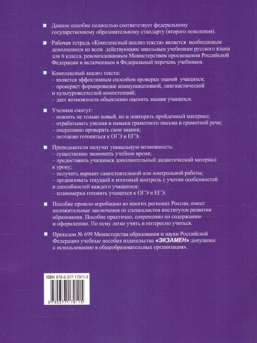 Русский язык 6 класс. Комплексный анализ текста. Рабочая тетрадь. ФГОС