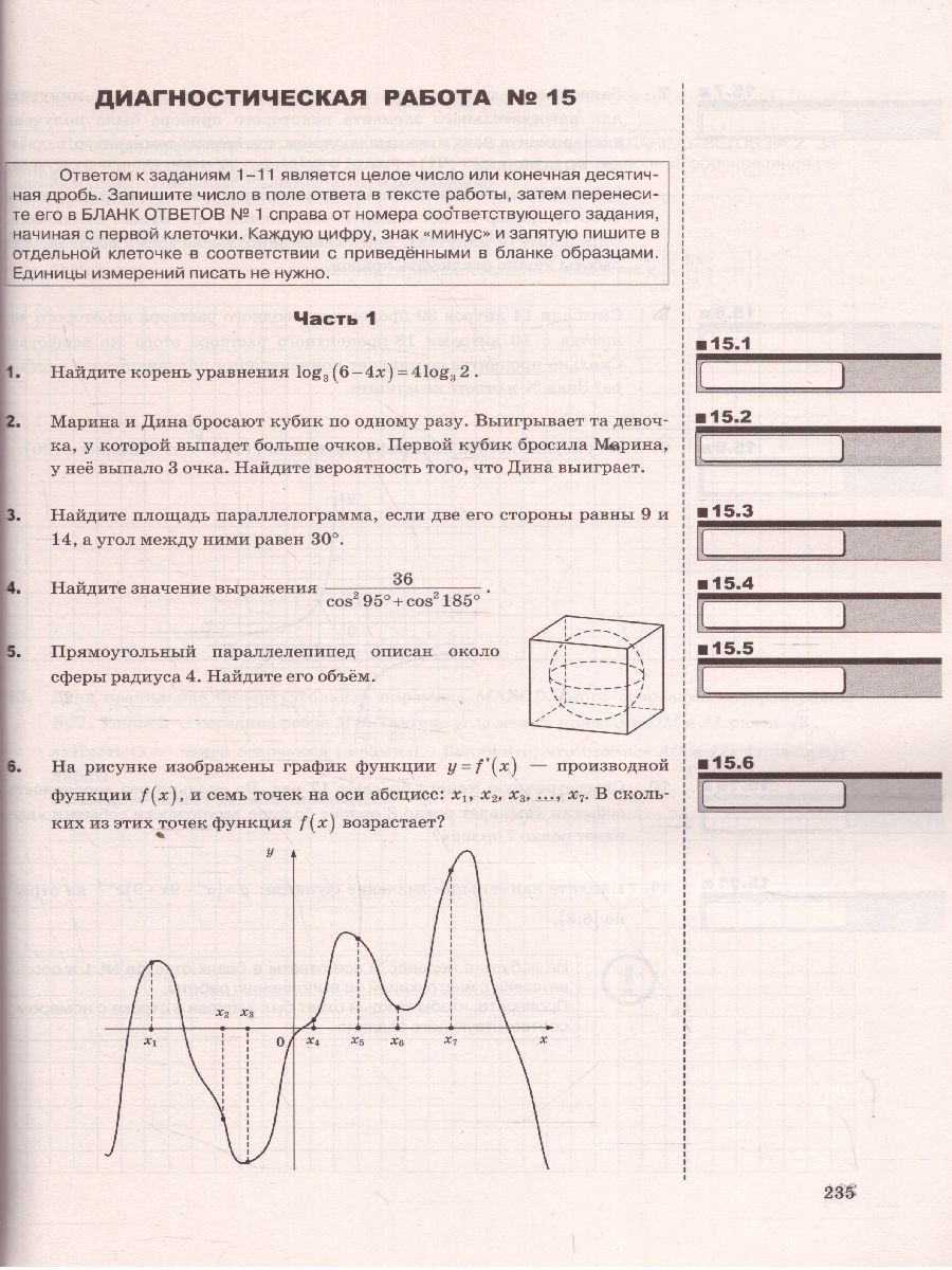 Математика. Профильный уровень. ЕГЭ 2023. 20 вариантов заданий. Рабочая тетрадь. Тематическая рабочая тетрадь по математике предназначена для подготовки к Единому государственному экзамену по математике профильного уровня, организации и проведения итогового повторения, диагностики проблемных зон в знаниях старшеклассников и последующей коррекции. Настоящее пособие написано в соответствии с утвержденными демоверсией и спецификацией ЕГЭ по математике профильного уровня. Оно содержит позадачные тренинги и диагностические работы в формате ЕГЭ. Уникальная методика подготовки апробирована в сотнях школ различных регионов России при организации подготовки к Единому государственному экзамену. Пособие позволяет проверить навыки решения задач, качество усвоения материала, выстроить индивидуальные траектории повторения и эффективно подготовиться к сдаче ЕГЭ. Пособие адресовано учащимся старших классов и их родителям, учителям математики и методистам.Характеристики