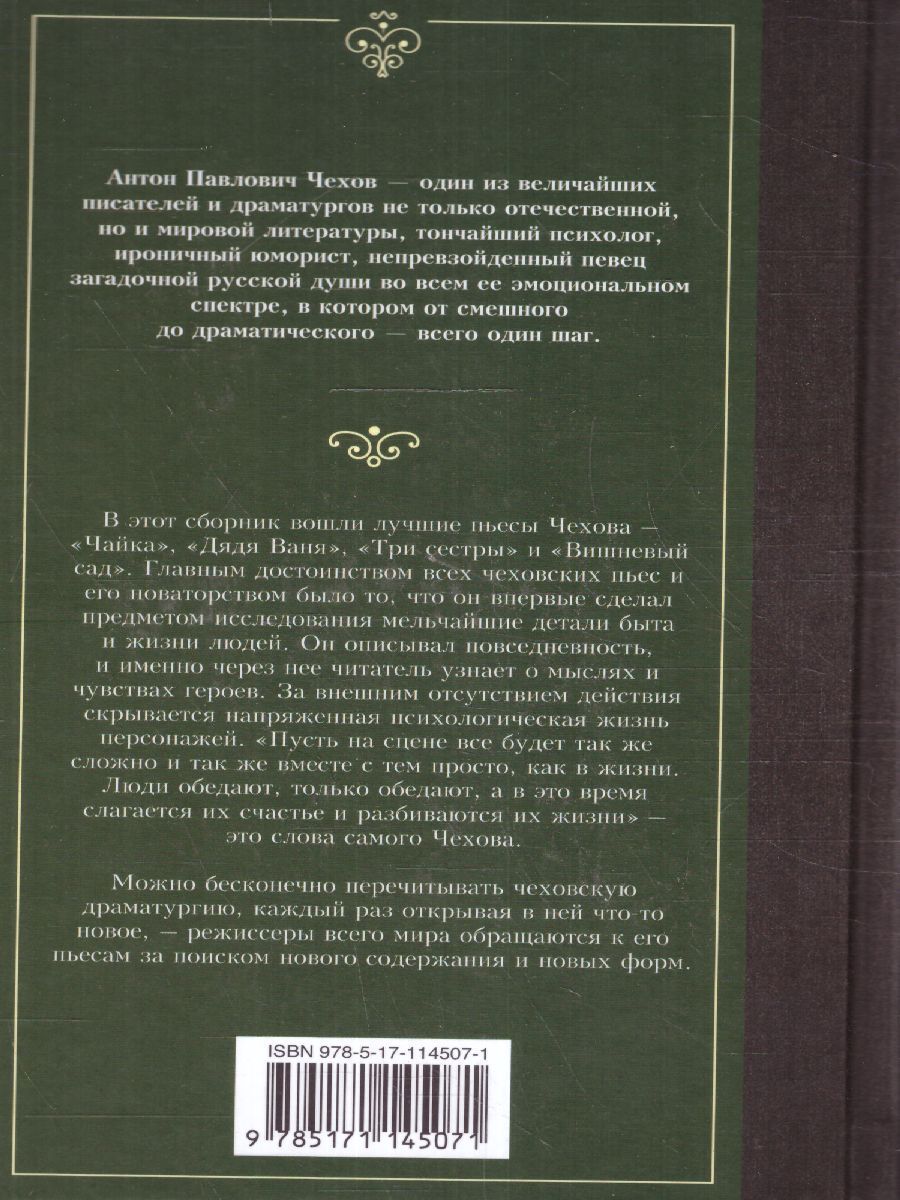 Вишневый сад. В эту книгу вошли классические пьесы Чехова, вот уже столетие не сходящие со сцены, многократно экранизированные самыми блистательными режиссерами мира и по сей день не утратившие своей гениальной, вечной актуальности.Характеристики