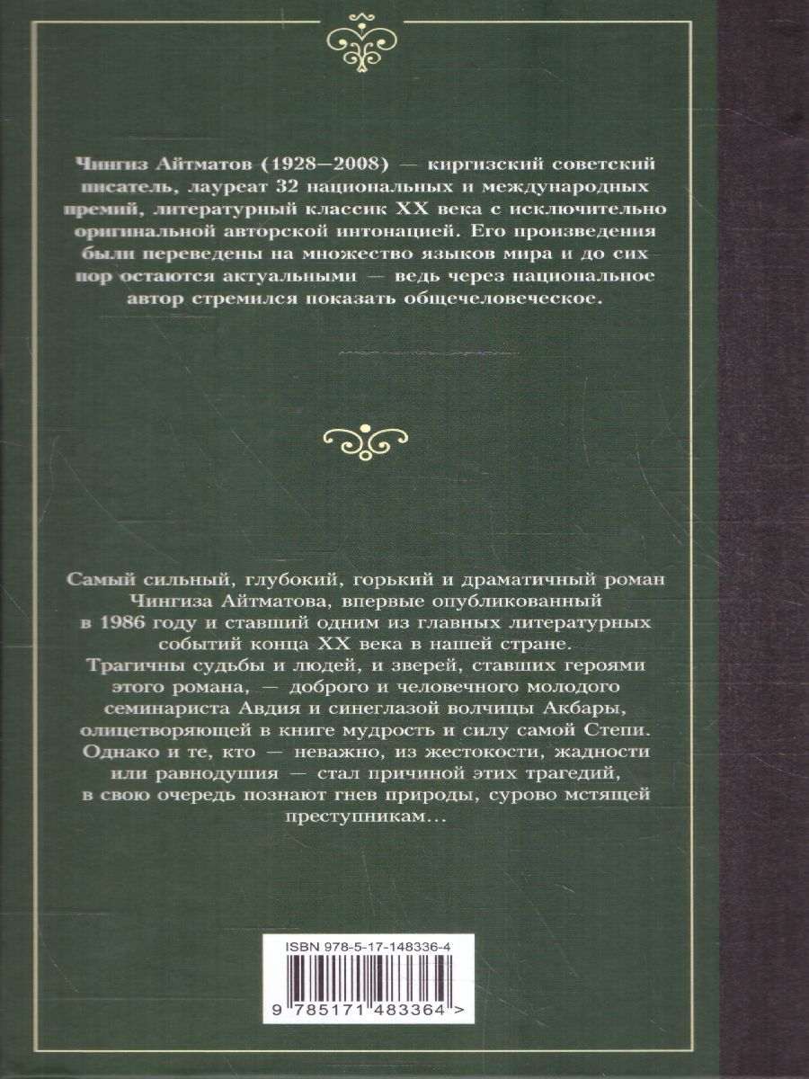 Плаха. Самый сильный, глубокий, горький и драматичный роман Чингиза Айтматова, впервые опубликованный в 1986 году и ставший одним из главных литературных событий конца ХХ века в нашей стране. Трагичны судьбы и людей, и зверей, ставших героями этого романа, - доброго и человечного молодого семинариста Авдия и синеглазой волчицы Акбары, олицетворяющей в книге мудрость и силу самой Степи. Однако и те, кто - не важно, из жестокости, жадности или равнодушия - стал причиной этих трагедий, в свою очередь, познают гнев природы, сурово мстящей преступникам...Характеристики