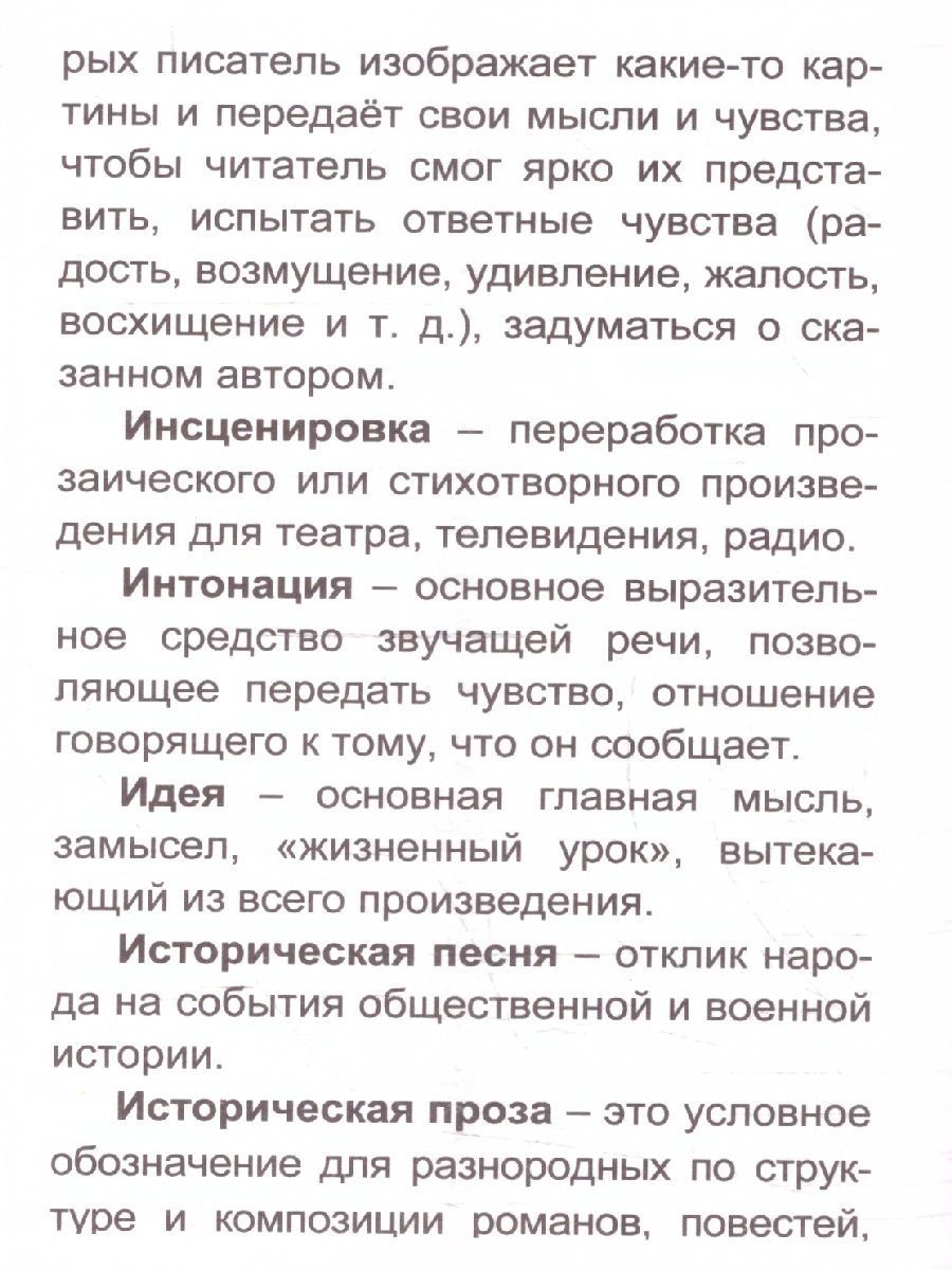 В пособии представлено обобщенное изложение теоретического материала по литературному чтению для 1-4 классов в виде справочного материала и литературоведческих понятий, направленное на достижение предметных и метапредметных образовательных результатов в соответствии с ФГОС. Развернутая подача материала привлечет внимание современного школьника, вызовет его интерес, поможет сделать процесс усвоения знаний не только простым, но и эффективным. Сборник может быть использован как в учебном процессе, так и для самостоятельного изучения и повторения школьной программы по литературному чтению, полезен школьникам при подготовке к контрольным и проверочным работам, выполнении домашних заданий. Предназначено обучающимся 1-4 классов, педагогам общеобразовательных организаций, родителям школьников, заинтересованным в успешном освоении детьми литературного чтения.Характеристики