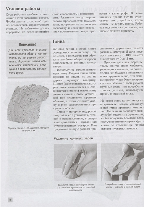 Лепка из глины – очень увлекательное занятие, особый вид творчества. Думаю, что втайне многие люди мечтают заняться скульптурой, но думают, что это очень непросто, и непрофессионалу эту науку не одолеть. На самом деле, работа с глиной не так сложна, как кажется, а этот самоучитель, поможет вам войти без проблем в этот чудесный мир и полюбить его навсегда. Авторы этой книги – известные французские скульпторы Берит Ильдр и Филипп Шазо предлагают читателю открыть для себя и искусство лепки из глины тела человека. Хорошо усвоив базовые техники, вы научитесь воплощать в глине руки, ноги, голову, и наконец, перейдете к лепке лица – этапу одновременно самому сложному и самому захватывающему – ведь именно на лицо человека способно отражать самые тонкие чувства и эмоции, а скульптор может передать их в глине. В этом тонком процессе передачи ощущений, в этом бескрайнем просторе, таятся загадки, которые художник разгадывает всю свою жизнь. • Книга, написанная ясным и доходчивым языком, направлена на то, чтобы дать читателю практические инструменты для творчества. • Большое количество иллюстраций позволяет максимально раскрыть суть описанных приемов. • Все тонкости и детали лепки рук, ног, ушей, носа, глаз, головы, кистей, стоп, волос.• Авторы легко раскрывают важные темы и щедро делятся накопленным опытом.Характеристики