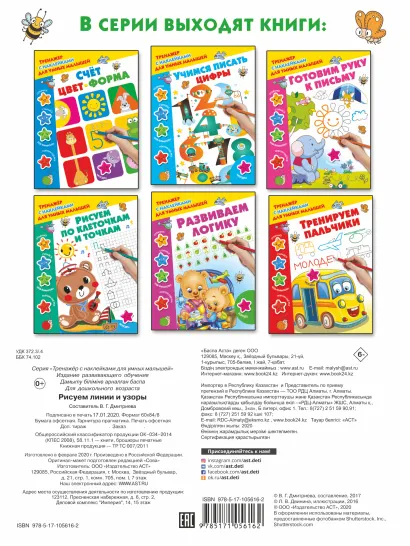 "Рисуем линии и узоры" — отличный подарок для будущего первоклассника.Предложите маленькому ученикукопировать и дорисовывать картинки, обводить линии, орнаменты и узоры — такие занятия тренируют мелкую моторику, развивают внимание, воображение, творческие способности. Выполняя интересные упражнения, малыш научится правильно держать ручку и карандаш, проводить линии красиво и аккуратно. Красочные наклейки дадут возможность ребёнку оценить свои успехи.Характеристики