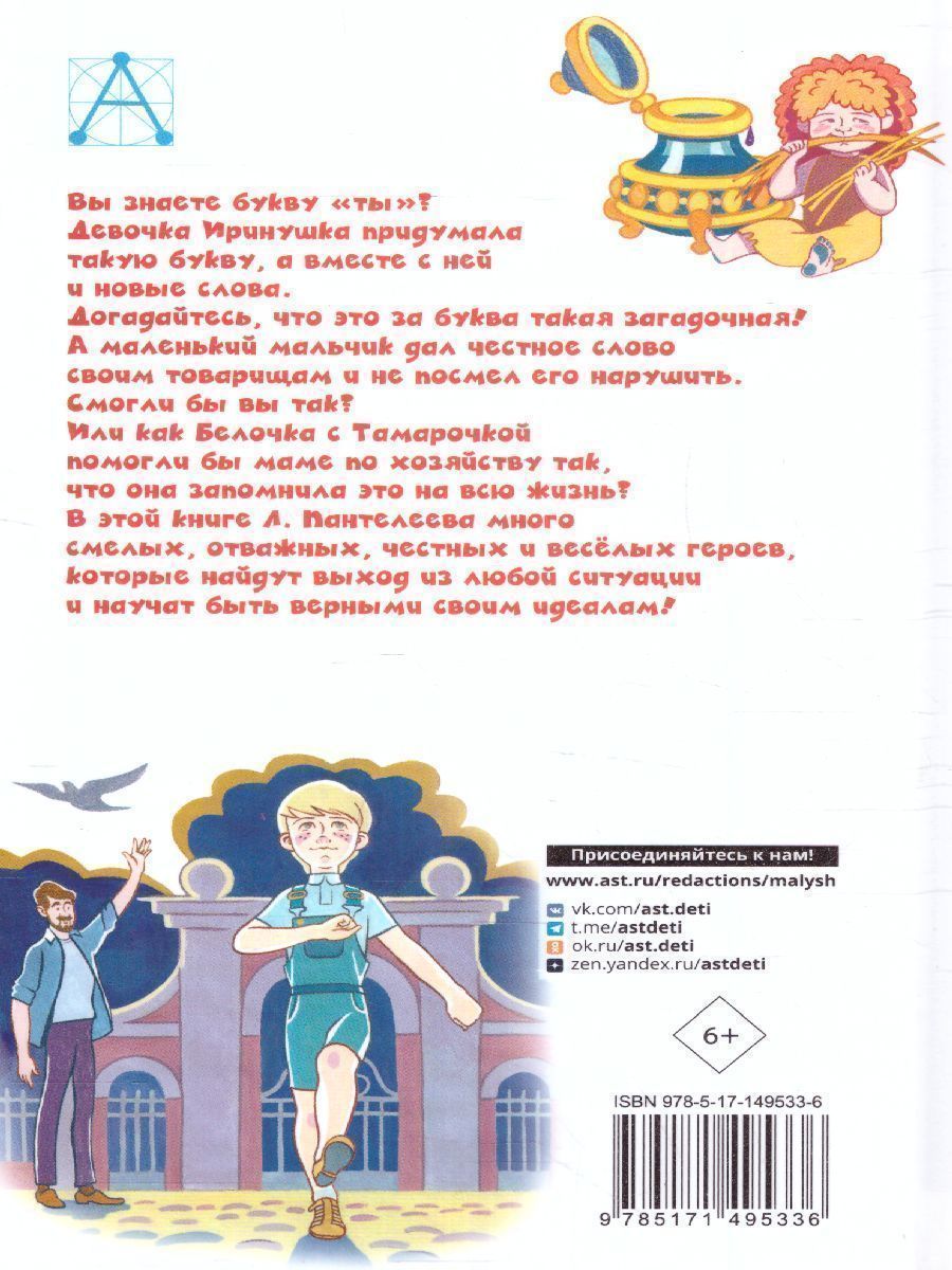 Буква "Ты". Сказки и рассказы. Детское чтение. В книгу включены самые знаменитые произведения Л. Пантелеева, которые входят в школьную программу: «Буква “ты”», «Честное слово», цикл «Про Белочку и Тамарочку» и другие. Л. Пантелеев (Алексей Иванович Еремеев) — известный советский писатель, на его произведениях выросло много поколений читателей. И дети, и взрослые зачитываются его книгами, ведь они рассказывают о смелости, честности, веселье и проказах, о том, что вне времени и всегда актуально. Вы знаете букву «ты»? Девочка Иринушка придумала такую букву, а вместе с ней и новые слова. Догадайтесь, что это за буква такая загадочная! А маленький мальчик дал честное слово своим товарищам и не посмел его нарушить. Смогли бы вы так? Или как Белочка с Тамарочкой помогли бы маме по хозяйству так, что она запомнила это на всю жизнь? В этой книге Л. Пантелеева много смелых, отважных, честных и весёлых героев, которые найдут выход из любой ситуации и научат быть верными своим идеалам! Для младшего школьного возраста.Характеристики