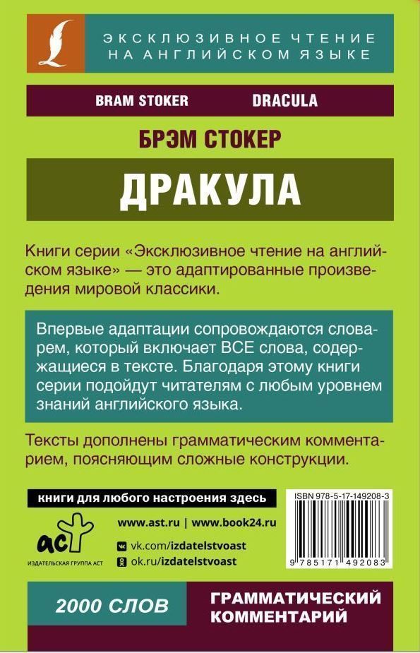 Ваша кровь стынет от упоминания английского? Ваши длинные зубы стучат от негодования, стоит вам завидеть английский текст, а глаза наливаются красным? "Дракула" ставит крест на этом досадном недуге! С "Дракулой" вы легко справляетесь с английским текстом, ведь все слова из текста вошли в словарь книги. Оригинальное произведение адаптировано и незначительно сокращено, чтобы богатый архаизмами язык Брэма Стокера стал ощутимо доступнее для читателя. Текст подготовил Сергей Александрович Матвеев, опытный автор множества популярных пособий. Адаптированная книга подойдет для любого уровня владения английским языком. "Дракула" — одна из наиболее ярких жемчужин готического романа. Эта книга сформировала каноничный образ вампира, каким его знаем мы. Она рассказывает о таинственном графе Дракуле, и о компании друзей, объединивших усилия, чтобы спасти своих любимых от смертельного недуга. Удастся ли им одолеть Дракулу с помощью могучего доктора Ван Хельсинга? Прикоснитесь к блестящему образцу хоррора, чтобы узнать!Характеристики
