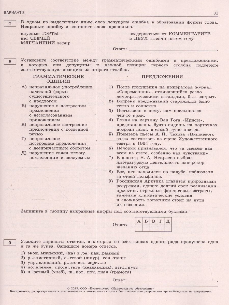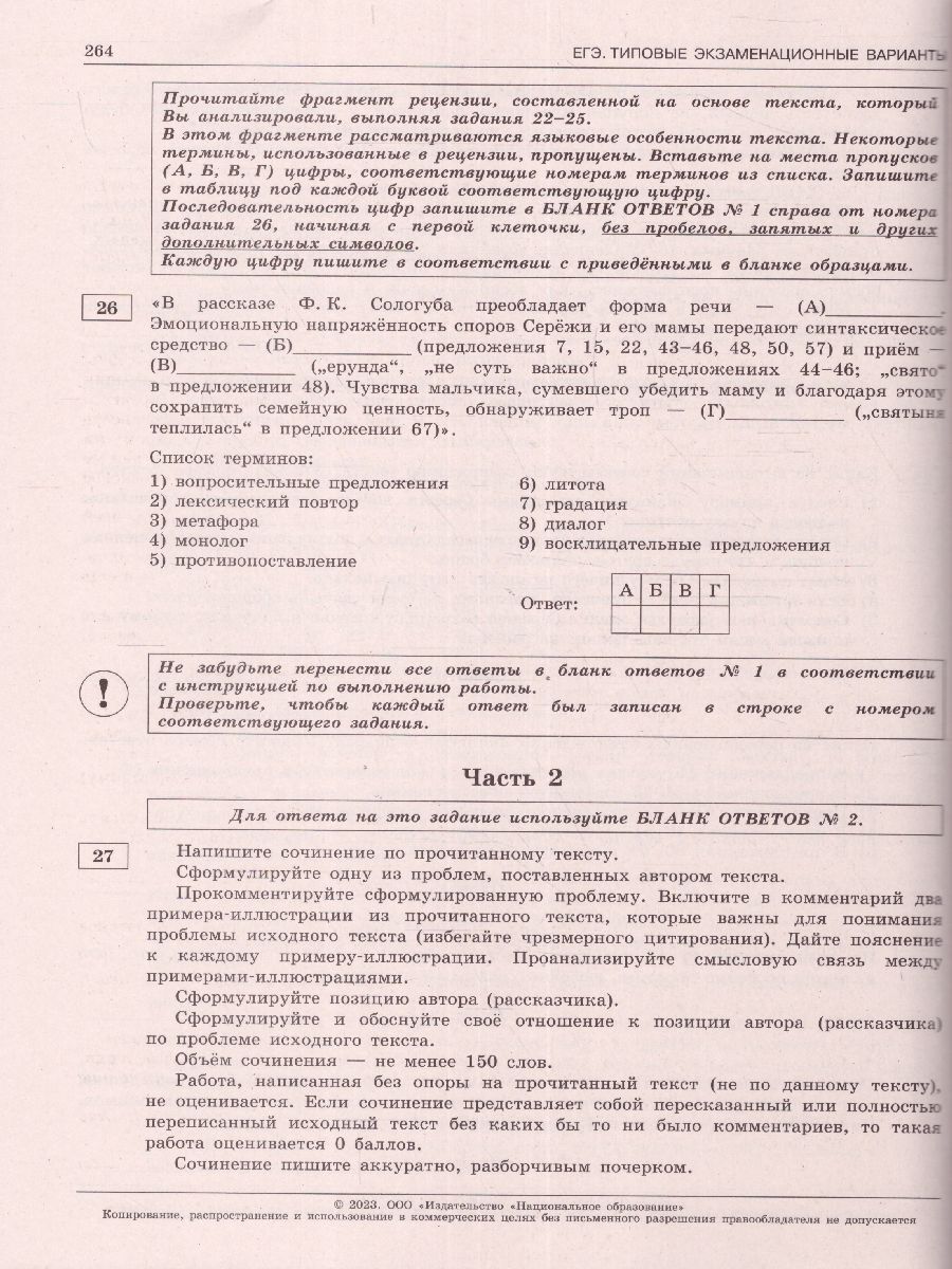 экзаменационные материалы |