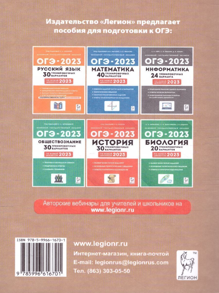 Подготовка к ОГЭ-2023 География. 20 тренировочных вариантов по демоверсии 2023г. Учебно-методическое пособие предназначено для подготовки к основному государственному экзамену в 9-м классе по географии. Книга содержит: 20 тренировочных вариантов, составленных по проектам спецификации и демоверсии ОГЭ 2023 года, опубликованным на сайте ФИПИ 23.08.2022 года: вариант работы с комментариями и рекомендациями по его выполнению: ответы ко всем вариантам: приложения, содержащие справочные материалы, необходимые для выполнения заданий. Книга адресована девятиклассникам, готовящимся сдавать ОГЭ по географии, и учителям. Она может быть использована и при дистанционном обучении.Характеристики