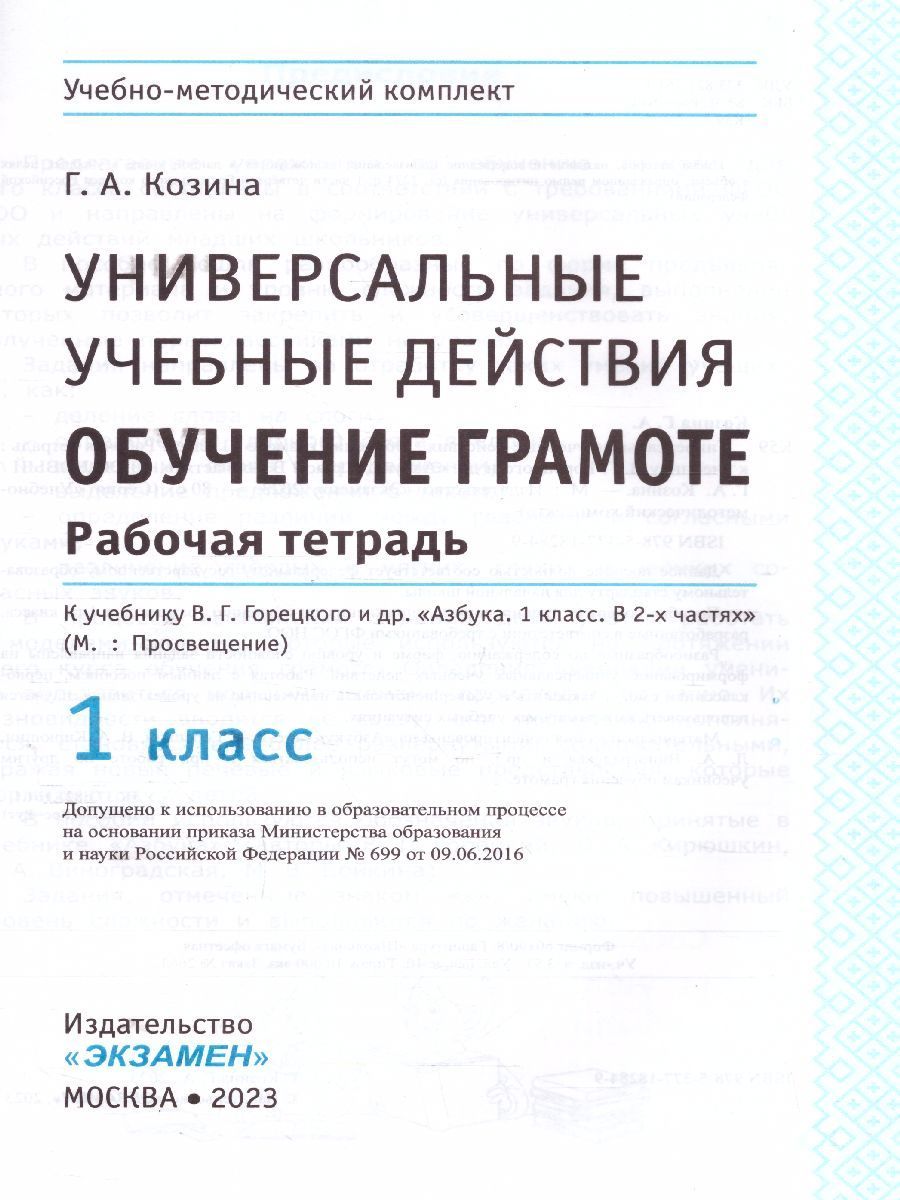 Обучение грамоте 1 класс. Рабочая тетрадь к учебнику В. Г. Горецкого и др. ФГОС. Данное пособие полностью соответствует федеральному государственному образовательному стандарту для начальной школы. Пособие содержит тренировочные упражнения по обучению грамоте для 1-го класса, разработанные в соответствии с требованиями ФГОС НОО. Разнообразные по содержанию, форме и уровню сложности задания направлены на формирование универсальных учебных действий. Работая с данным пособием, первоклассники смогут закрепить и усовершенствовать полученные на уроках знания, научатся использовать их в различных учебных ситуациях. Материалы пособия ориентированы на "Азбуку" (авт. В. Г. Горецкий, В. А. Кирюшин, Л. А. Виноградская и др.), но могут использоваться и при работе по другим учебникам обучения грамоте.Характеристики