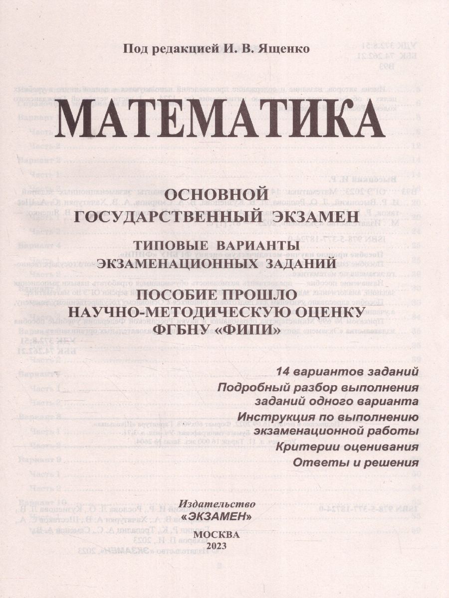 ОГЭ 2023 Математика 14 вариантов. ТВЭЗ