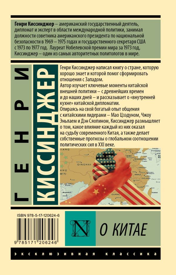 Генри Киссинджер — американский государственный деятель, дипломат и эксперт в области международной политики. Идеолог американо-китайских отношений, он занимал должности советника американского президента по национальной безопасности в 1969–1975 годах и государственного секретаря США с 1973 по 1977 год. Лауреат Нобелевской премии мира за 1973 год, Киссинджер — один из самых авторитетных специалистов по современному Китаю. Генри Киссинджер написал книгу о стране, которую хорошо знает и которой помог сформировать отношения с Западом. Автор изучает ключевые моменты китайской внешней политики — с древнейших времен и до наших дней и рассказывает о "внутренней кухне" китайской дипломатии. Опираясь на свой богатый опыт общения с китайскими лидерами — Мао Цзэдуном, Чжоу Эньлаем и Дэн Сяопином, Киссинджер размышляет о том, какое влияние каждый из них оказал на судьбу современного Китая, а также делает собственные прогнозы о глобальном соотношении политических сил в XXI веке.Характеристики