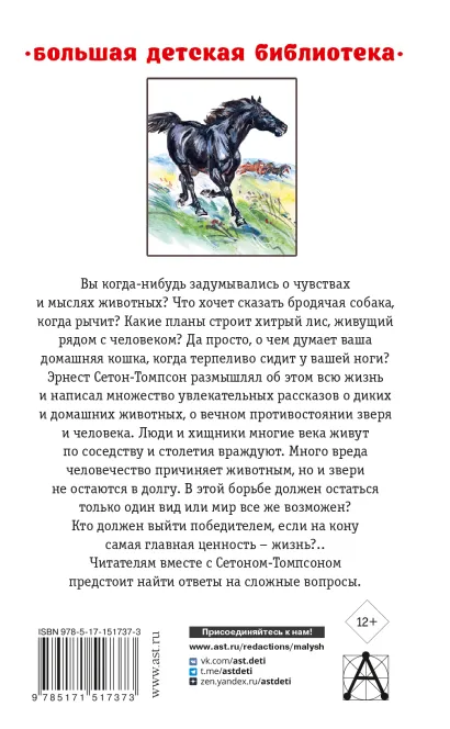 Эрнест Сетон-Томпсон (1860 – 1946 гг.) – один из первых писателей-анималистов. Он поспособствовал становлению жанра рассказов о животных и повлиял на многих собратьев по перу. В его произведениях говорится о вечном противостоянии зверя и человека. И уступить в этой борьбе никто не может, да и не хочет. Животные нападают на домашний скот, люди охотятся на диких животных. Каждый по-своему прав. Особенно если вспомнить, что события развиваются в середине XIX века. Тем не менее рассказы Сетона-Томпсона пробуждают сочувствие и помогают понять дикого зверя и его тяжёлую и интересную жизнь. Произведения входят в школьную программу. Для среднего школьного возраста.Характеристики