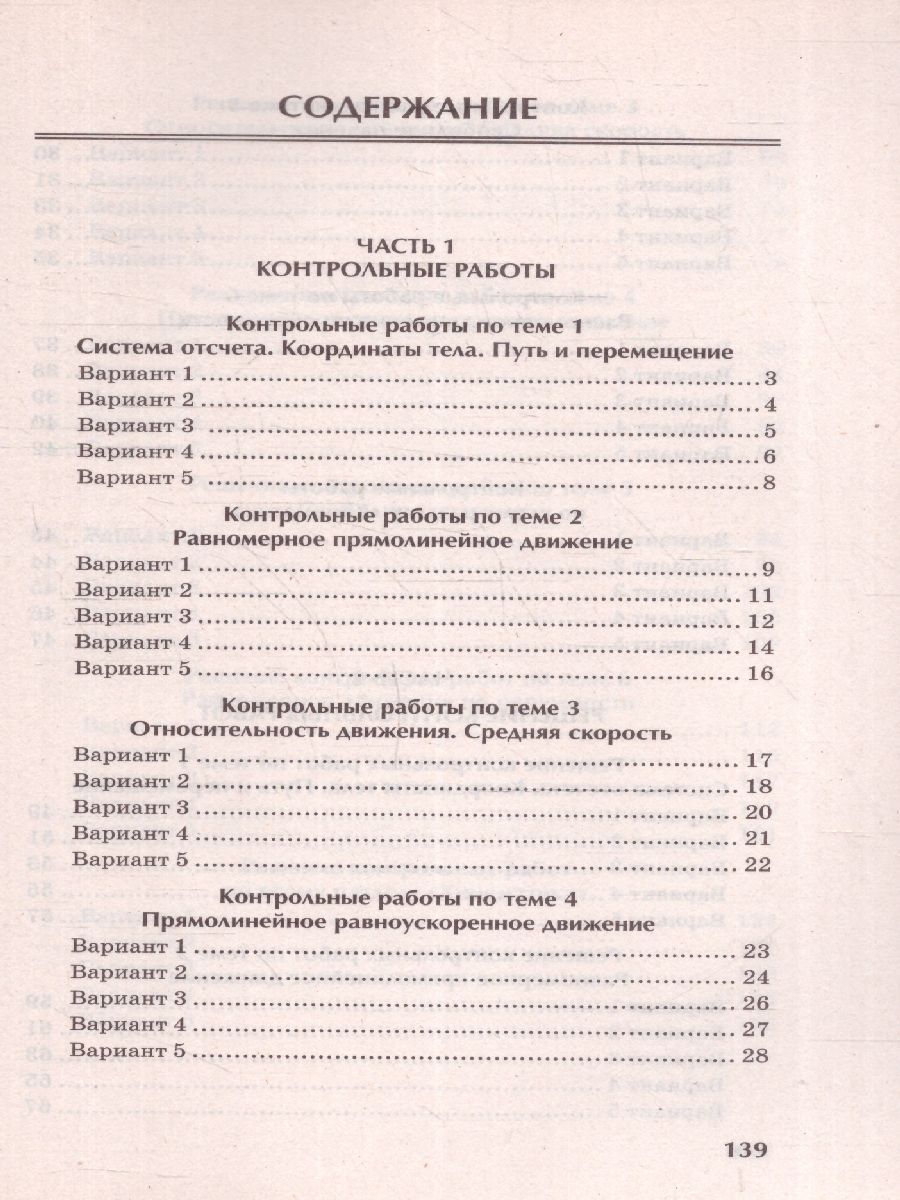 Физика 10-11 классы. Кинематика. Контрольные работы